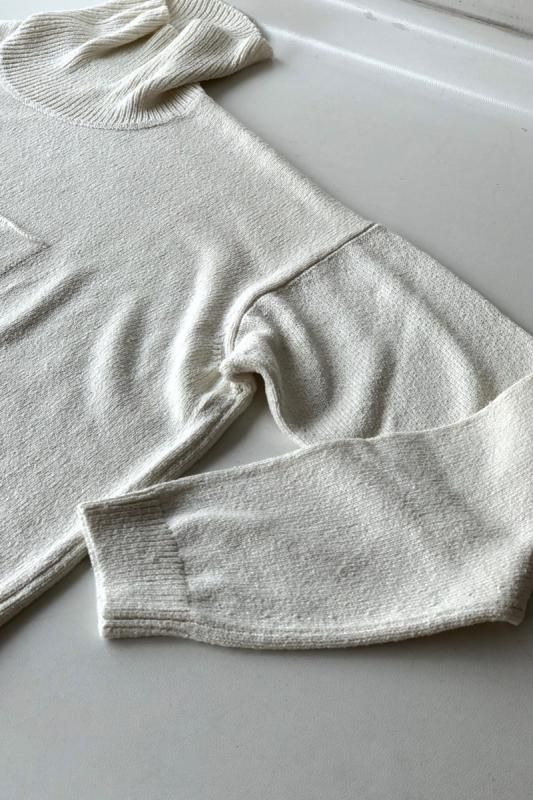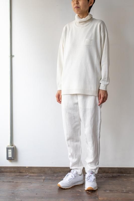 素材 絹100% カラー ホワイト サイズ 2 (ワンサイズ) 肩幅 52 身幅 61.5 着丈 63 袖丈47 ネック高さ13(cm) *サイズの多少の誤差はご了承くださいませ。 程よい厚みがあり、しなやかな肌触り。 素朴な風合いのシルクニットは、胸元の小さなポケットがアクセント。 落ち感がきれいなワイド幅ニットです。 シルクノイルという、天然素材のシルクを使用しております。 シルク特有の光沢感はあまりなく、太さを均一に仕上げていないざっくりとした素朴な風合いが特徴です。 シルク本来の保温・吸湿性をかね備えています。 ストンとしたボックスシルエット。 ホワイトは真っ白ではなく、ほんのり生成りがかった色になります。 ネック部分はゆったりとした作りです。 身長160cm コーディネイト ゴーシュ リネンコットンカルゼ テーパードパンツ(ホワイト) 素材の特性上、摩擦によって毛羽立ち、毛抜け、毛玉ができやすいですが、 風合いとしてお楽しみいただければと思います。 引っ掛けにご注意ください。 ※パソコンのモニター環境により、商品の色味が実物と異なって見える場合がございます。 予めご了承ください。
