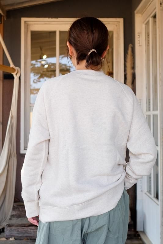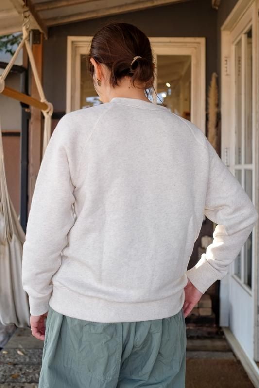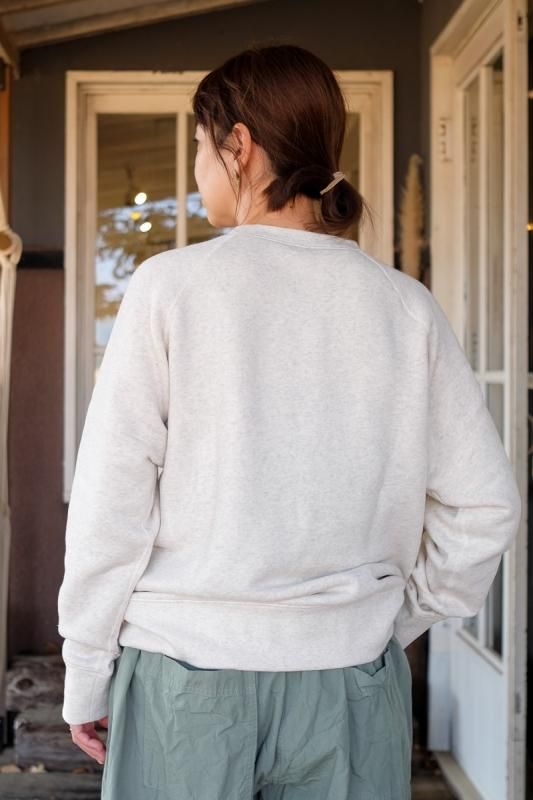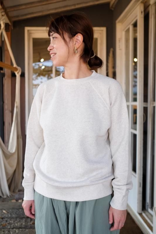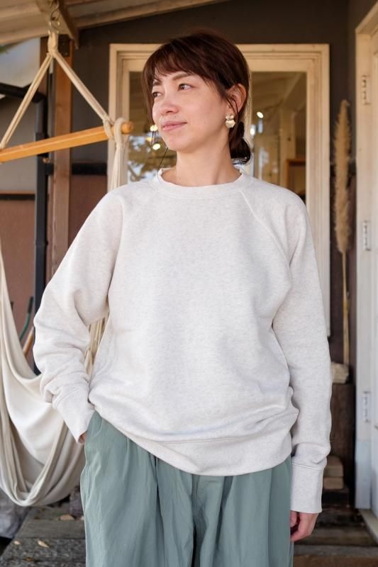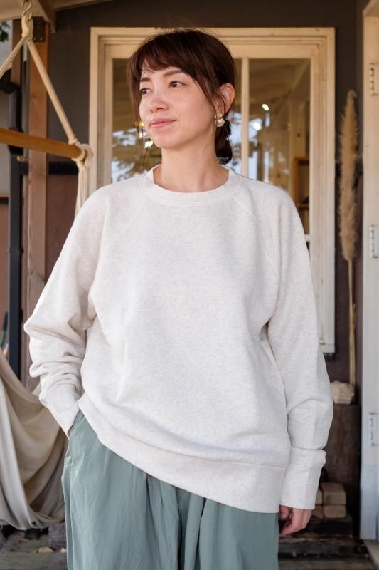 素材 コットン95%、エラスタン(ポリウレタン)5% カラー オートミール、杢グレー、チャコール サイズ S、M、L、XL S 身幅 51 着丈 59 ゆき丈 67(cm) M 身幅 54 着丈 60 ゆき丈 70(cm) L 身幅 56 着丈 63 ゆき丈 73(cm) XL 身幅 57 着丈 65 ゆき丈 77(cm) (コーディネートVeritecoeur ワイドパンツ、Blundstone CLASSIC COMFORT) IITOのスウェットが今年も届きました。 MID AIRという、空気をたっぷりとふくませながら紡いだ オリジナルの糸を使い、驚くほどのやわらかさと、軽さが自慢のスウェット。 ふわふわの裏毛が体を包み込みぽかぽかに温めてくれます。 この季節には嬉しいことに、乾きも速いんです。 とにかく優れもの、大好評のスウェットです。 ちょうどでも、大きめでも、いい雰囲気です。 女性モデル(155cm)でS〜L、男性モデル(179cm)でL、XLを着ています。 良かったら参考にしてみてくださいね。 身長155cm オートミールSサイズ着用 オートミールMサイズ着用 オートミールLサイズ着用 身長179cm オートミールLサイズ着用 オートミールXLサイズ着用 驚きの柔らかさで、動きやすい! 細すぎず太すぎずちょうど良いフィット感です。 ふわふわであたたかな裏毛です。 オートミール 杢グレー チャコール