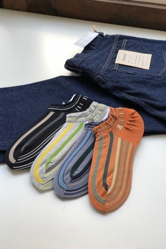 素材 綿70%、ナイロン30% カラー テラコッタ、ミックスグレー、ブルーグレー、ブラック サイズ フリー(メンズ 25cm~28cm ) スニーカーや素足を見せたい時に便利なソックスです。 トライプに凹凸感があるので、 ふんわりとした柔らかなはき心地です。 所々に透け感があり、見た目も涼しげ。 レディースサイズもあります。→ ANTIPAST COLOR STRIPES カバーソックス 上より ミックスグレー テラコッタ ブルーグレー ブラック ※パソコンのモニター環境により、商品の色味が実物と異なって見える場合がございます。 予めご了承ください。