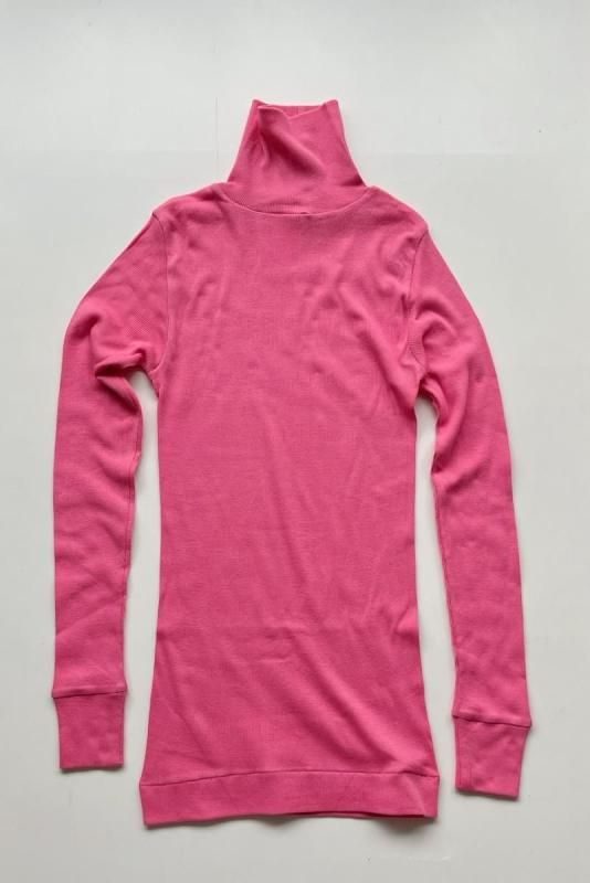 商品名 homspun 40/1 丸胴テレコ タートルネックプルオーバー 素材 綿100% カラー サラシ(ホワイト) オートミール ブラック TOPダークチャコール(こい杢グレー) ピンク(*新色 可愛らしい明るい色です) サイズ フリー 肩幅 31 身幅 29 着丈 65 袖丈62 ネック高さ12(cm) *大変伸縮性のある素材です。伸ばさずに平置きした状態で計りました。 サイズの個体差がございます。多少の誤差はご了承くださいませ。 着丈が長くて、気持ちのいいインナー。 ホームスパン では定番のテレコ編みのカットソーです。 2025年秋冬のシーズンカラーは、可愛らしいピンクが新色で登場です。 *定番商品につき品番は混在します。 テレコとはリブ編みの一種で、凹凸感のある素材が特徴です。 柔らかく、伸縮性があり、フィット感にも優れていますが、体のラインを拾いすぎず、 気持ちよく着ていただけます。 丸胴(まるどう)という、脇に縫い目がない編み方ですので、直接肌に触れるインナーには嬉しい仕様になっています。 インナーにピンク着用 新色のピンクは可愛らしい明るい色です。 *実際はもう少し明るい色味です。大変申し訳ありませんが、多少の色味の誤差はご了承下さいませ。 上より ブラック TOPダークチャコール(こい杢グレー) オートミール サラシ(ホワイト) ネックはそのままクシュっとさせても、シンプルにふたつ折りでも、どちらでも着ていただけます。 サラシ(ホワイト)*コーディネイトは参考商品です。 インした時にしっかり収まりがいいのと、 出したい時にも見せたい長さでクシュっとさせたいので、インナーのTシャツは長めの丈がいいですね。 TOPダークチャコール(こい杢グレー) テレコのクルーネック長袖Tシャツもあります。 こちらからご覧ください→* ※パソコンのモニター環境により、商品の色味が実物と異なって見える場合がございます。 予めご了承ください