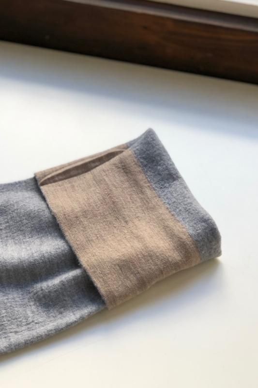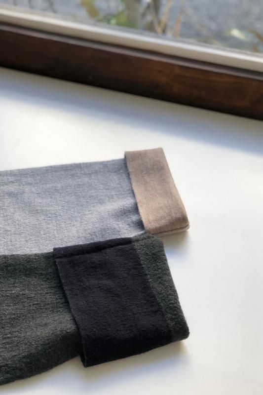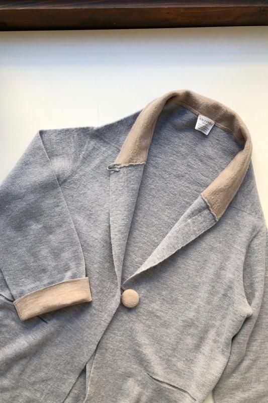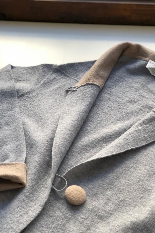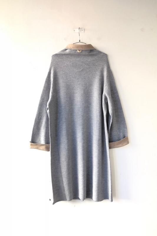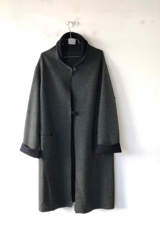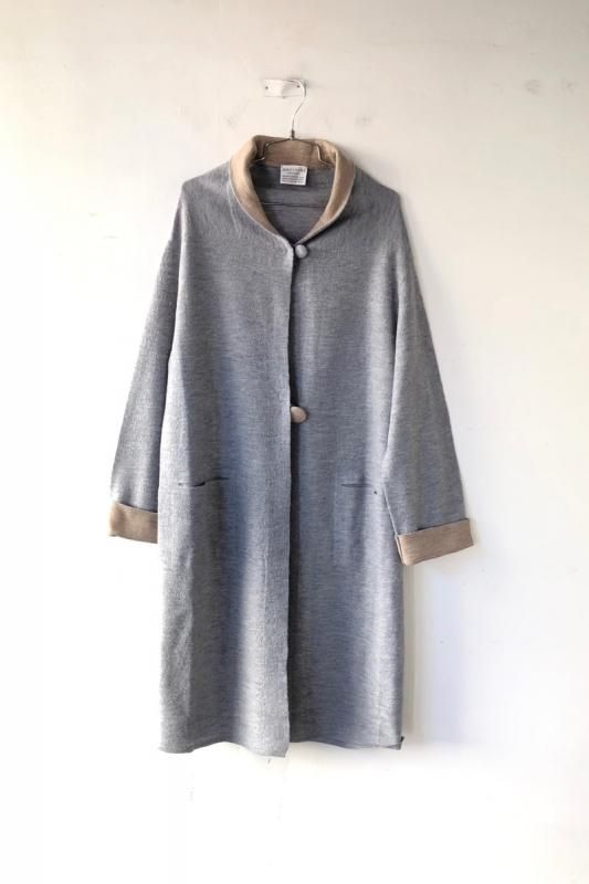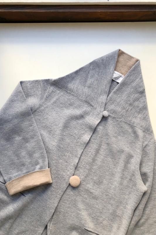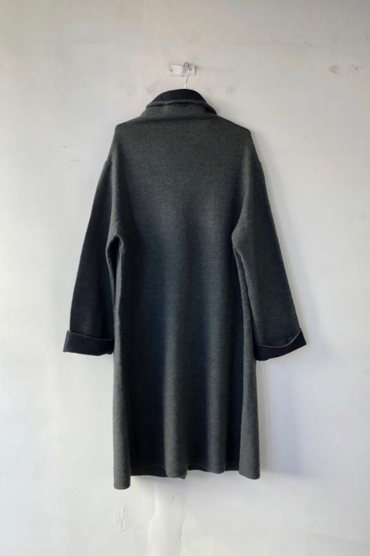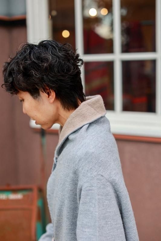素材 毛100% カラー グレー×ベージュ(ボディがグレー、襟と袖がベージュの配色) チャコール×ネイビー (*カラー名はチャコールですが、実際のボディの色は、杢カーキに見えます。襟と袖は濃紺の配色) サイズ ワンサイズ ゆき丈 90 身幅 61 着丈 110(cm) *縮絨の為、個体差があります。サイズの多少の誤差はご了承くださいませ。 ウールに圧縮をかけることにより、フェルトのように薄手ですが、暖かみのある柔らかな生地感。 ほんの少し凹凸感のある風合いが特徴の縮絨ウール。軽い着心地のロングコート。 *ニットを縮絨させる特殊な加工を施しているため、通常のニットよりも毛の繊維が出て、毛玉になりやすくなっております。 バッグ等の摩擦にお気をつけ下さい。 ボタンは2個付いています。 ボタンを2個とも閉めて。。 身長160cm /グレー×ベージュ(ボディがグレー、襟と袖がベージュの配色) コーディネイト tannossa オーガニックツイルチノパンツ(ベージュの1サイズ) 薄手ですので、ロングカーディガンのように羽織っていただけます。 袖口は広めになります。(袖口幅約18.5cm) 折り曲げると配色が出るようになっています。 配色部分の幅はおおよそ10cm お好きな幅で折り曲げて下さい。 チャコール×ネイビー *カラー名はチャコールですが、実際のボディの色は杢カーキに見えます。襟と袖は濃紺の配色です。 濃淡が混じり合った、奥行きのある色合いです。 コーディネイト YAECA レディスコンフォートシャツ リラックスショート/ホワイト(Mサイズ) homspun 60/-フライス タートルネック プルオーバー(サラシ) YAECA レディス チノ タックテーパード(ホワイト/28サイズ) ※パソコンのモニター環境により、商品の色味が実物と異なって見える場合がございます。 予めご了承ください。