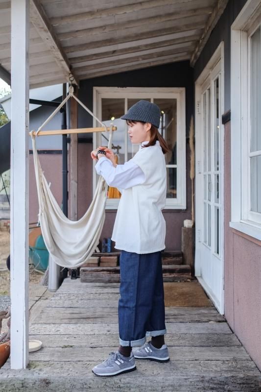 素材 コットン100% カラー ホワイト、グレー サイズ フリー、グレー 肩幅 62 身幅 59 着丈 65(cm) (g)より、 肌触りの良いコットン100%素材の ニットベストが入荷致しました。 コットン素材の為、 色々な季節に着ていただくことができます。 暖かい時期にはTシャツ1枚と合わせても◎ 衿の開きが控えめになっていますので、 インナーを着れば1枚でも着ていただくことができます。 身長156cm ホワイト着用 コーディネート SUNSHINE+CLOUD カントリー、caqu FS アンクルボーイズ、ZDA マラソンスニーカー バック 袖口と裾はクルクルとカールしています。 ホワイト グレー