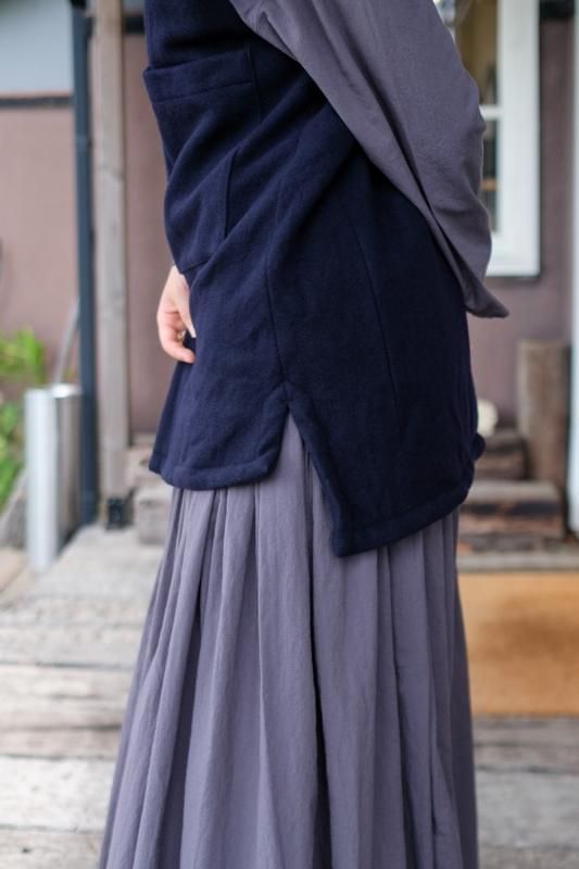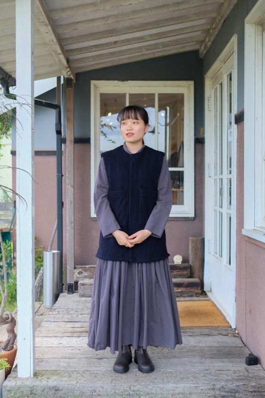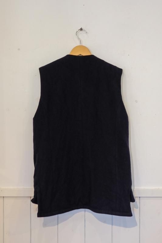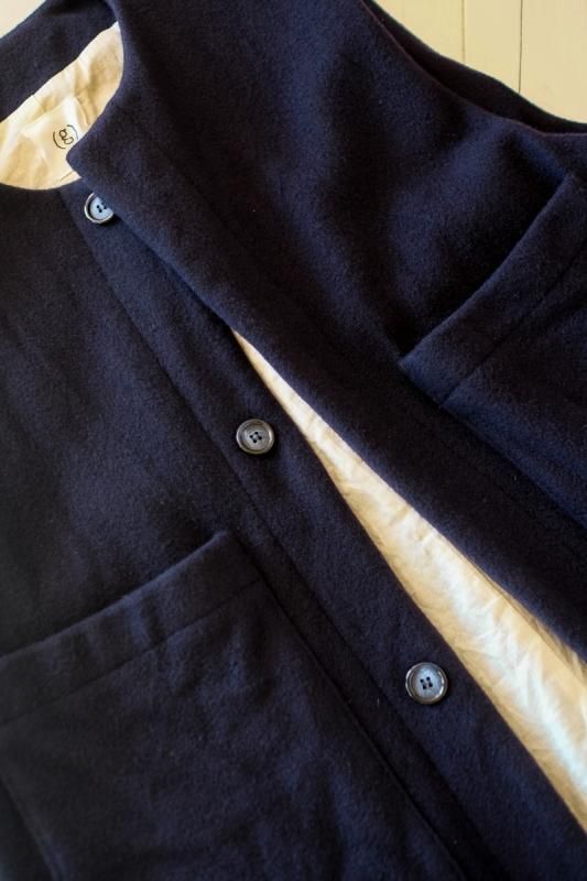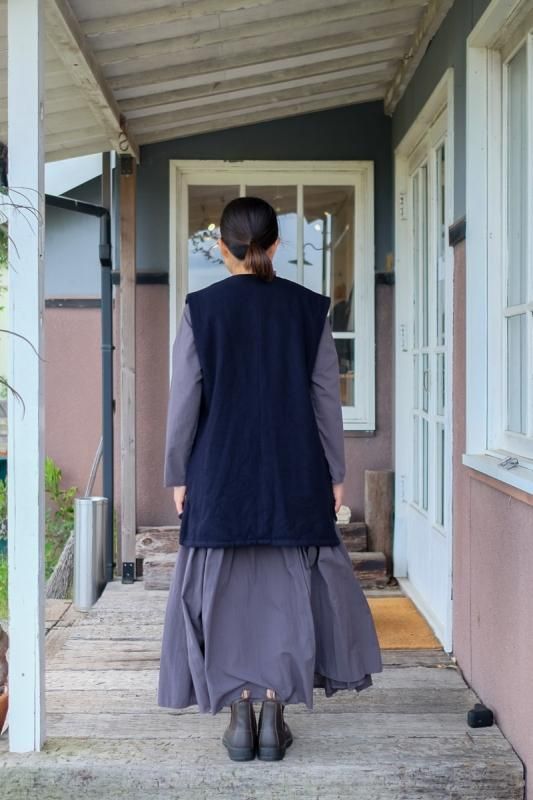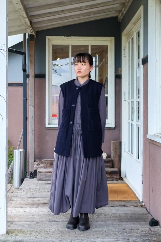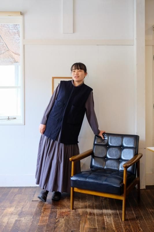 素材 ウール100% カラー ダークネイビー サイズ フリー 肩幅 43 身幅 53 着丈 前71、後76(cm) (g)より、 とても温かいウール100%のメルトン素材のロングベストが入荷致しました。 コットンの裏地が付いているので、保温性が高いです。 ワンピースやパンツスタイルに羽織るだけでサマになって、 とても雰囲気のあるベストです◎ 身長156cm ダークネイビー着用 コーディネート Veritecoeur ワンピース、Blund stone ELASTIC SIDED BOOT 前後で着丈の長さが違います。 後ろはお尻が隠れるくらいまであります。 ヒップ周りも温かいのは、寒い季節に嬉しいポイントですね。 バック サイドにスリットが入っています。 フロントに大きめのポケットが。 ダークネイビー