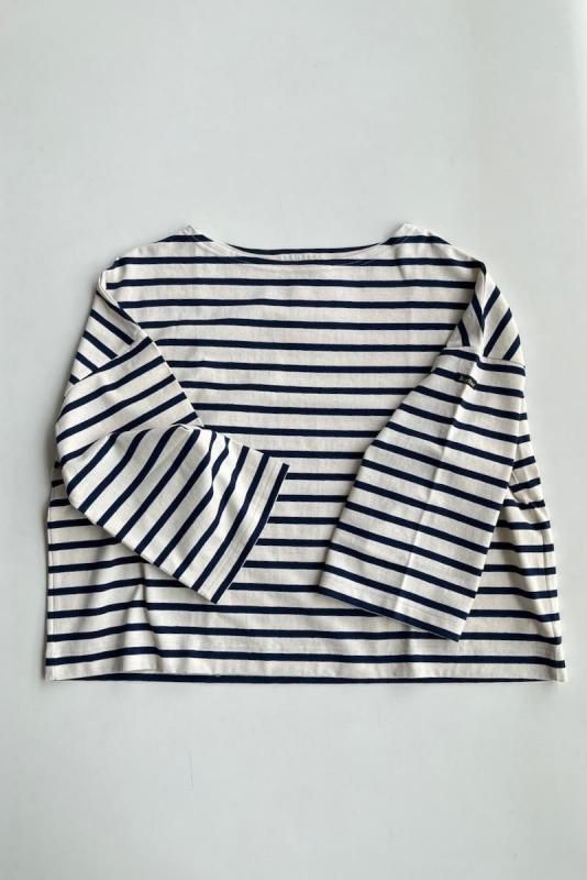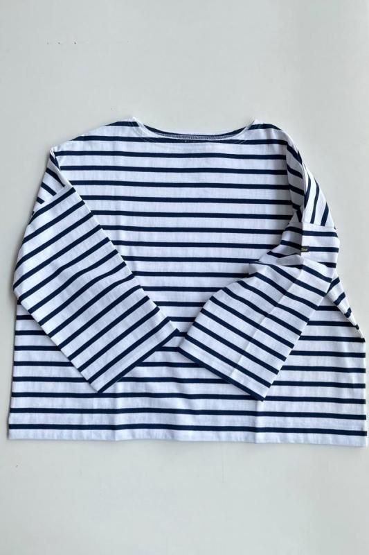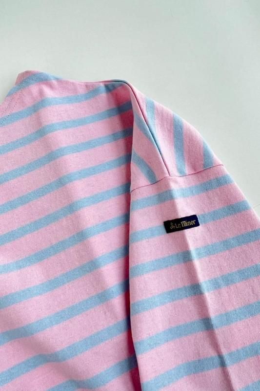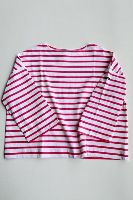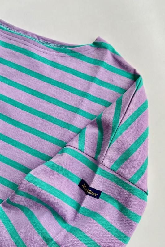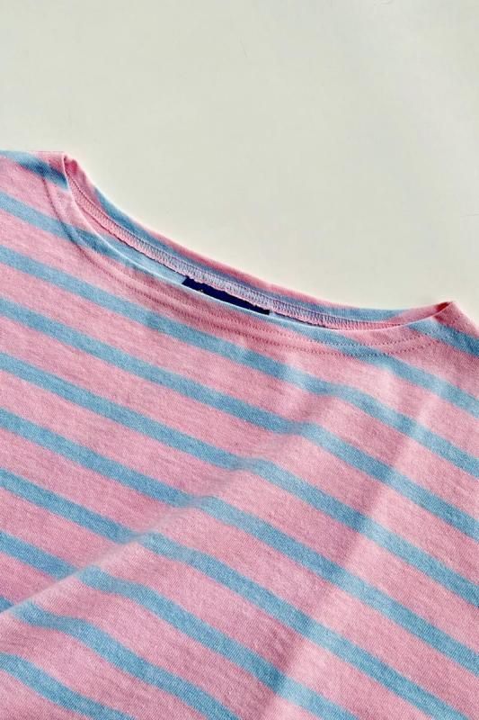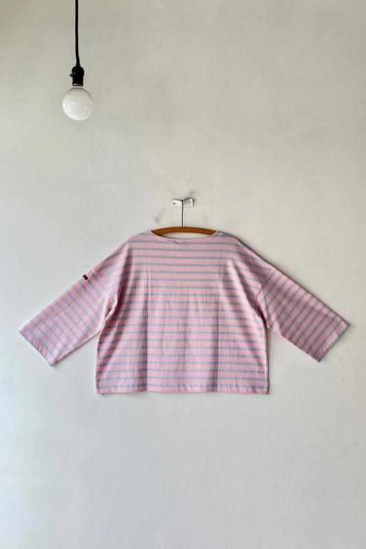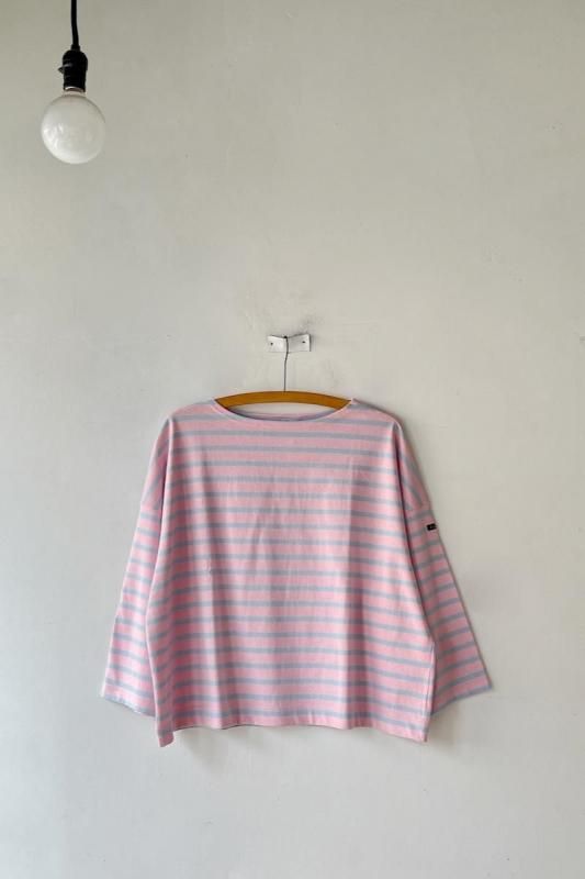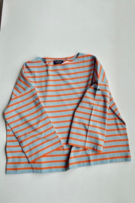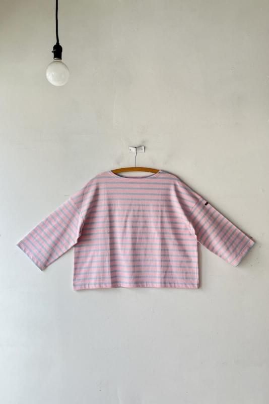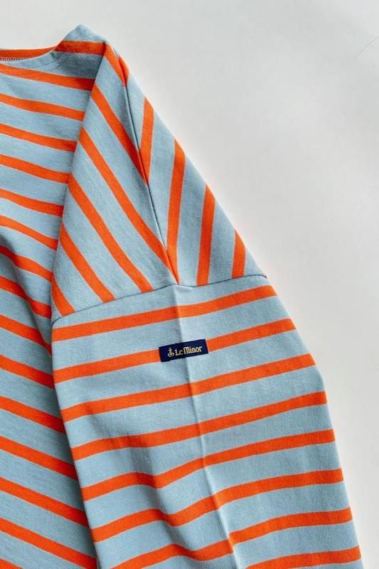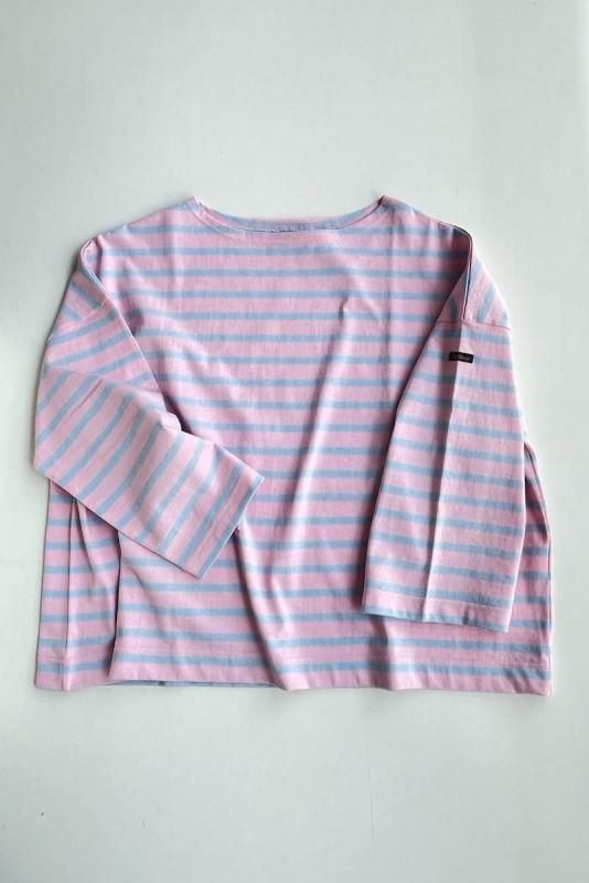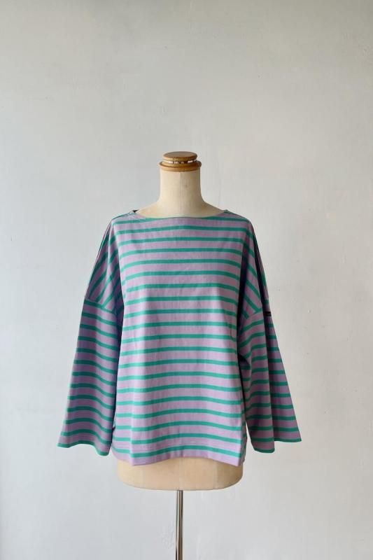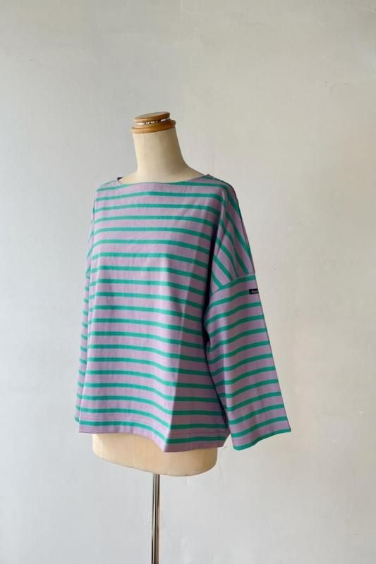素材 綿100% カラー (ベースカラー )× (ボーダーカラー) キナリ × ネイビー ホワイト × ネイビー ホワイト × ピンク ホワイト × レッド ホワイト × イエロー ブルーグレー × オレンジ ライトピンク × サックス ライトパープル × ターコイズ(ほぼグリーンに近い) サイズ 1(ワンサイズ) ゆき丈 70 身幅 63 着丈 56 袖丈 33 袖口幅 18.5 裾幅 65(cm) *個体差がありますので、サイズの多少の誤差はご了承くださいませ。 バスクシャツの本場、フランス生まれのルミノアのボーダーTシャツ。 暑い時期も、サラッと気持ち良く着られる薄手のボーダーTシャツです。 (透け感はほとんど気にならないと思います。 首元はボートネックのあきです。 あきが気になる場合はインナーにタンクトップなどの着用をおすすめします。) 肩の落ちるかなりワイドシルエット。 袖幅も広くゆったり、だいたい9分袖くらいです。 丈はスッキリ短めですので、バランスよく着られます。 肌寒い時期はインナーに長袖Tシャツ、タートルネックを重ね着できます。 ライトピンク × サックス ライトピンク × サックス(前) ライトピンク × サックス(後ろ) ライトパープル × ターコイズ(ほぼグリーンに近いです) ブルーグレー × オレンジ ー ー ライトパープル × ターコイズ(ほぼグリーンに近いです) ー ー ライトピンク × サックス ー ー 上、ホワイト × ピンク 下、ホワイト × レッド ホワイト × レッド ー ー ホワイト×ピンク ー ー ホワイト × イエロー ー ー 上、ホワイト × ネイビー 下、キナリ × ネイビー キナリ × ネイビーは、 表面に細かい黒茶っぽい点々のような綿カスが見られますが、 点のようなものはコットンの葉や茎の破片。 自然な風合いをお楽しみ下さい。 キナリ × ネイビー ー ー ホワイト×ネイビー ※パソコンのモニター環境により、商品の色味が実物と異なって見える場合がございます。 予めご了承ください。
