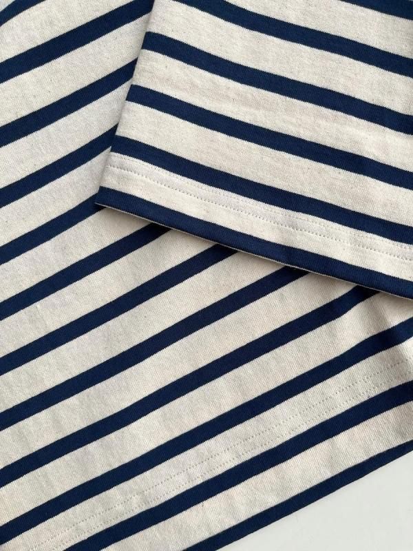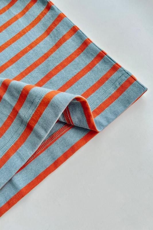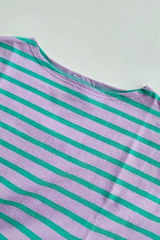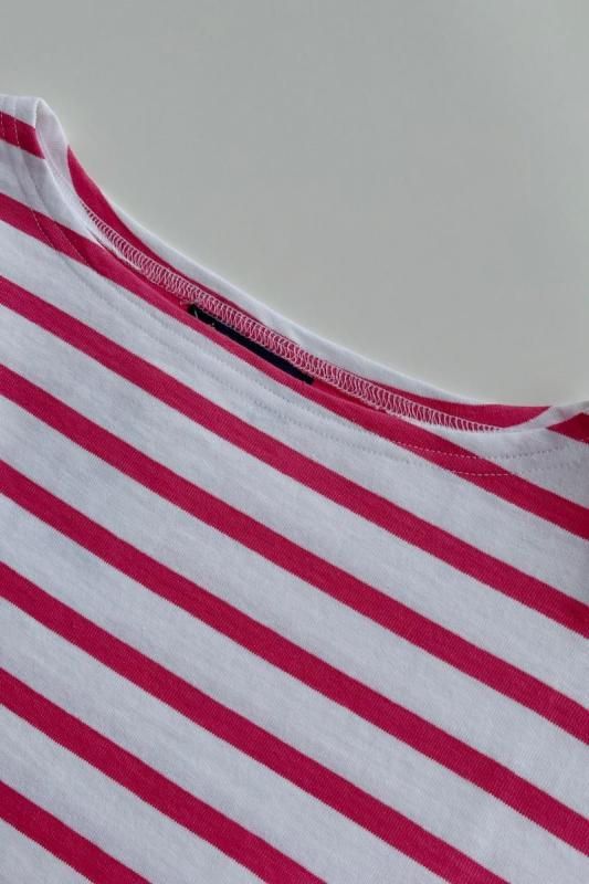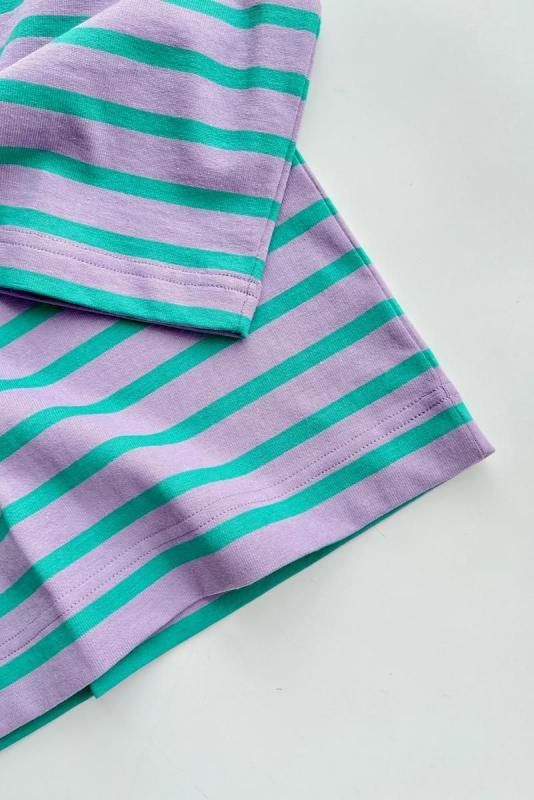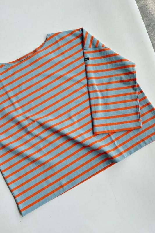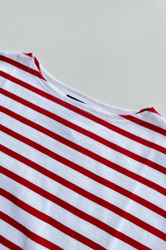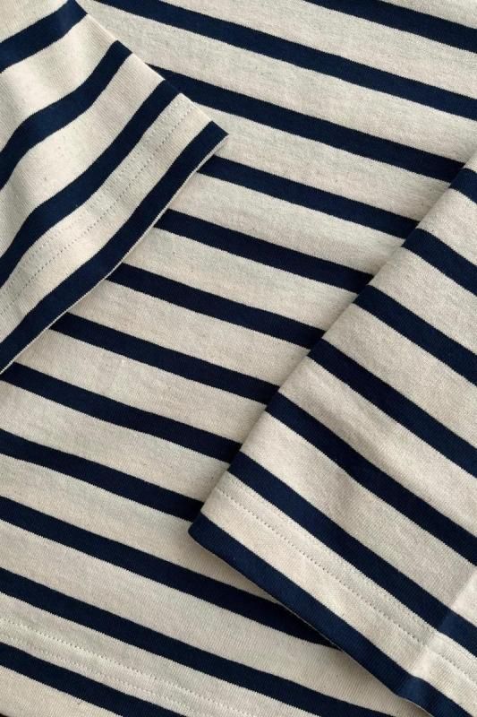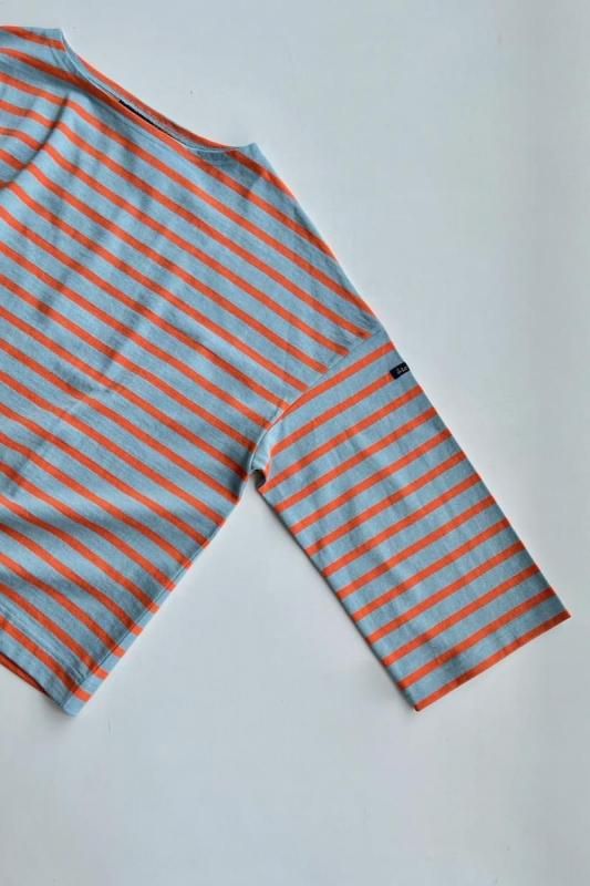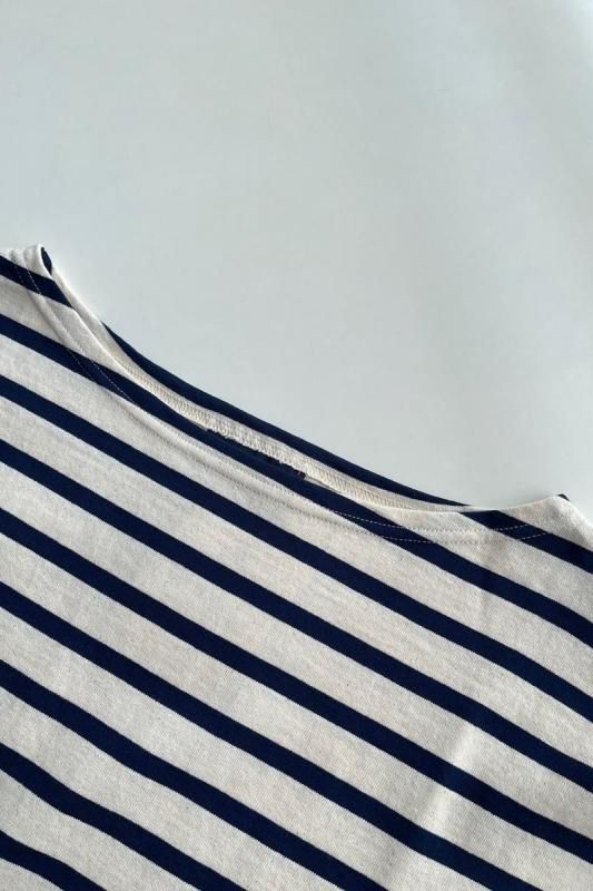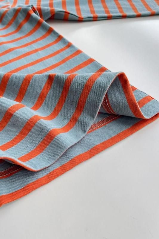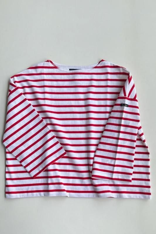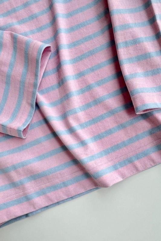 素材 綿100% カラー (ベースカラー )× (ボーダーカラー) キナリ × ネイビー ホワイト × ネイビー ホワイト × ピンク ホワイト × レッド ホワイト × イエロー ブルーグレー × オレンジ ライトピンク × サックス ライトパープル × ターコイズ(ほぼグリーンに近い) サイズ 1(ワンサイズ) ゆき丈 70 身幅 63 着丈 56 袖丈 33 袖口幅 18.5 裾幅 65(cm) *個体差がありますので、サイズの多少の誤差はご了承くださいませ。 バスクシャツの本場、フランス生まれのルミノアのボーダーTシャツ。 暑い時期も、サラッと気持ち良く着られる薄手のボーダーTシャツです。 (透け感はほとんど気にならないと思います。 首元はボートネックのあきです。 あきが気になる場合はインナーにタンクトップなどの着用をおすすめします。) 肩の落ちるかなりワイドシルエット。 袖幅も広くゆったり、だいたい9分袖くらいです。 丈はスッキリ短めですので、バランスよく着られます。 肌寒い時期はインナーに長袖Tシャツ、タートルネックを重ね着できます。 ライトピンク × サックス ライトピンク × サックス(前) ライトピンク × サックス(後ろ) ライトパープル × ターコイズ(ほぼグリーンに近いです) ブルーグレー × オレンジ ー ー ライトパープル × ターコイズ(ほぼグリーンに近いです) ー ー ライトピンク × サックス ー ー 上、ホワイト × ピンク 下、ホワイト × レッド ホワイト × レッド ー ー ホワイト×ピンク ー ー ホワイト × イエロー ー ー 上、ホワイト × ネイビー 下、キナリ × ネイビー キナリ × ネイビーは、 表面に細かい黒茶っぽい点々のような綿カスが見られますが、 点のようなものはコットンの葉や茎の破片。 自然な風合いをお楽しみ下さい。 キナリ × ネイビー ー ー ホワイト×ネイビー ※パソコンのモニター環境により、商品の色味が実物と異なって見える場合がございます。 予めご了承ください。
