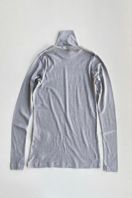商品名 ゴーシュ スーピマカシミアフライス タートルネックTシャツ 素材 綿90% カシミア10% カラー ライトグレー ブラック サイズ 2 (ワンサイズ) 肩幅 31 身幅 37 着丈 59 袖丈 57 ネック高さ 9 袖口幅 7.5 (cm) *個体差があります。 大変伸縮性のある素材です。伸ばさずに平置きした状態で計りましたのでサイズの多少の誤差はご了承くださいませ。 ゴーシュでは定番の、インナーに使えるタートルネックTシャツです。 しなやかで柔らかさが特徴のスーピマ綿にカシミアを混紡した、 滑らかな肌触りが気持ちいいカットソーです。 *2025年秋冬はプライス少し変更になりました。ご了承くださいませ。 体に気持ちよくフィット。とても伸縮性がありますので、肌馴染みよくお使いいただけます。 首元のタートル部分も程よいフィット感です。 ライトグレー着用 *製品染め加工が施してありますので 一点一点に多少の歪みやシワ感、サイズの個体差があります。 柔らかな素材の持つ特性となりますので、風合いのひとつとしていただけたらと思います。 ブラック ※パソコンのモニター環境により、商品の色味が実物と異なって見える場合がございます。 予めご了承ください。