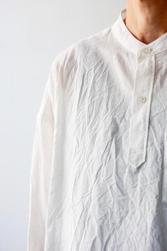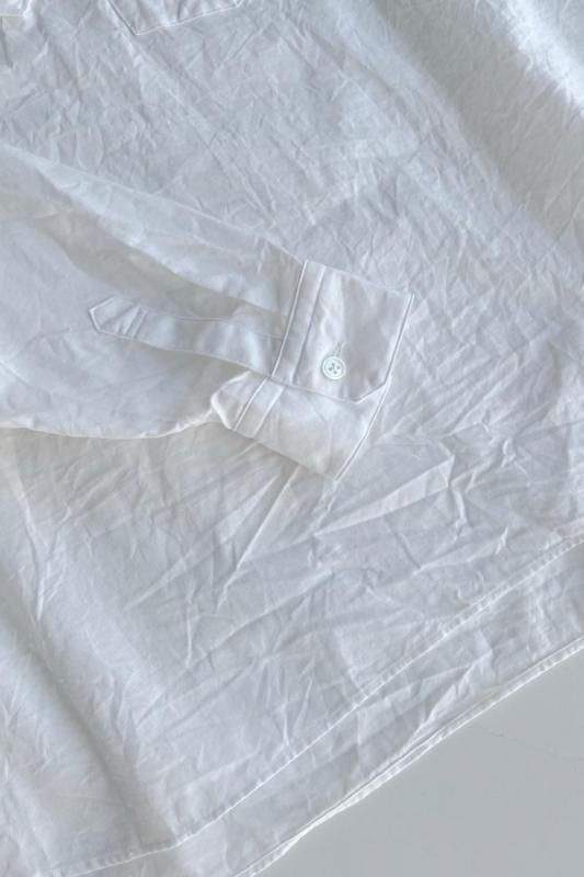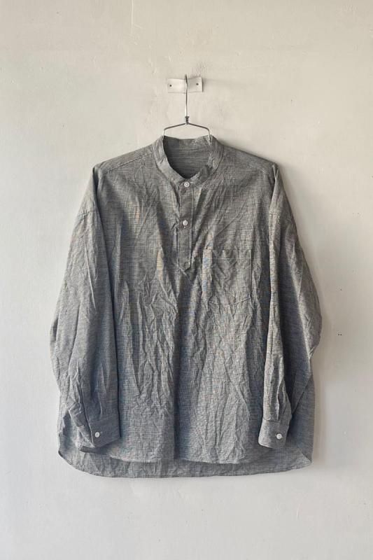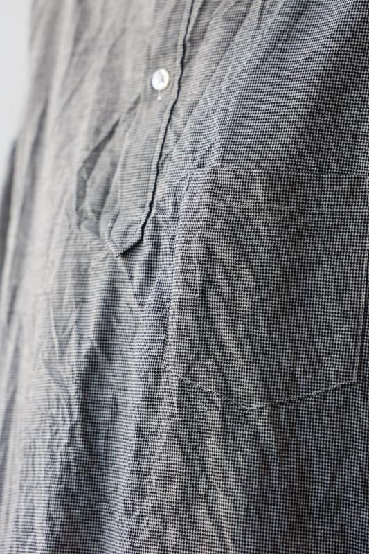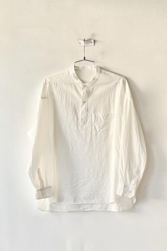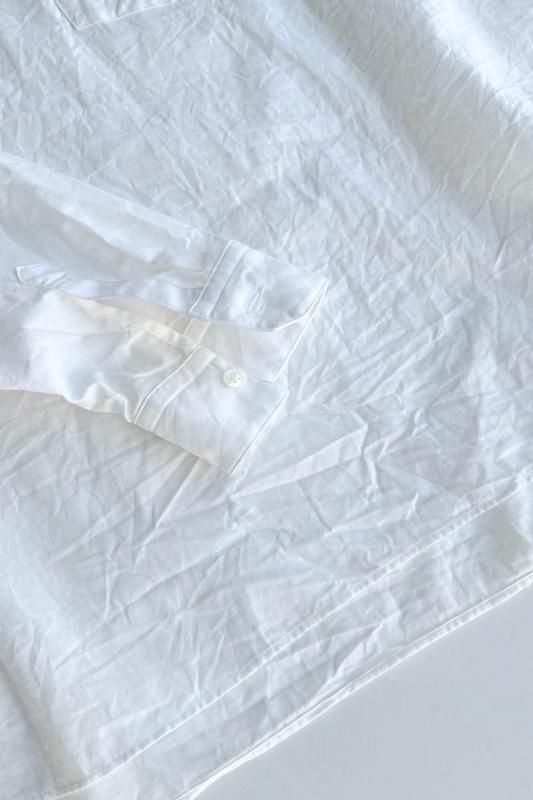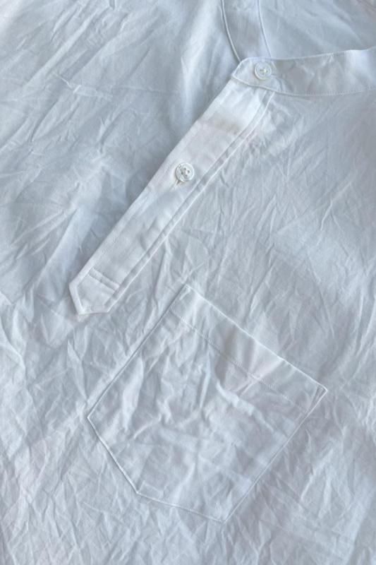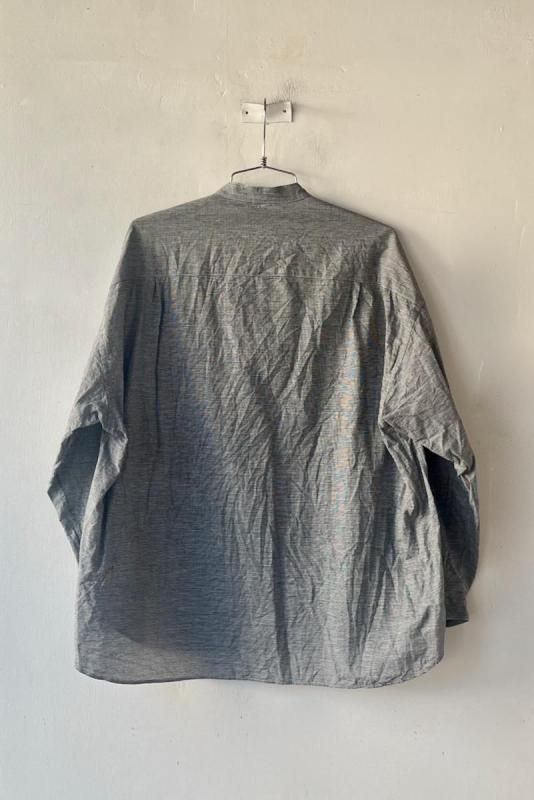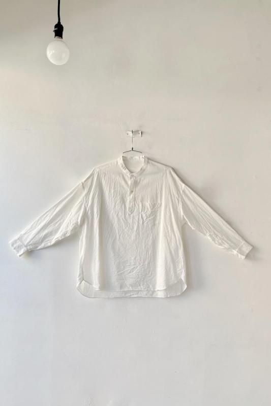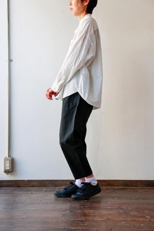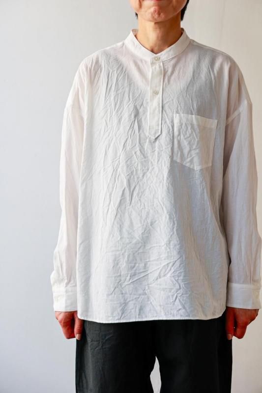 商品名 ゴーシュ コットンリネンガーゼ スタンドカラーシャツ 素材 綿85%、麻(リネン)15% カラー 千鳥柄、ホワイト サイズ 2 (ワンサイズ) 肩幅 58.5 身幅 62 着丈 ホワイト:前67、後ろ71 /千鳥柄:前69.5、後ろ72.5 袖丈 48.5(cm) *個体差があります。サイズの多少の誤差はご了承くださいませ。 2025年秋冬。ゴーシュの新作シャツです。 すぐに着られるサラサラした素材。 新型のスタンドカラーシャツは、 ふわっと着ていただく、ゆるいシルエットになります。 いつもと違う雰囲気で、太めのパンツで ゆるっとしたコーディネイトもおすすめです。 身長160センチ 薄手のコットンリネン生地になります。 柔らかさの中に、ほんのり麻のサラッとした手触りを感じられる、 ナチュラルな風合いです。 *製品洗い加工が施してありますので、洗いざらしの強めのシワ感があります。 自然な風合いをお楽しみ下さい。 一点一点に多少の歪みやシワ感、サイズの個体差があります。予めご了承下さい。 リネン混の生地に季節は関係ないそうです。 リネンには熱を保つ効果があり、混紡する素材や厚みによっては、秋冬も活躍する生地になるのです。 長いシーズン使える便利な素材ですね。 袖丈はやや長め。 袖口はカフスのデザインですので、 お好みでロールアップして下さいね。 ホワイトの方が透け感が多めです。 ホワイトは、麻のムラ糸感があり、薄い点々のようなものがみられます。 風合いのひとつとしていただければと思います。 *インナーに黒のタンクトップ着用 ボトムをスカートに変えてみました。 ※パソコンのモニター環境により、商品の色味が実物と異なって見える場合がございます。 予めご了承ください。
