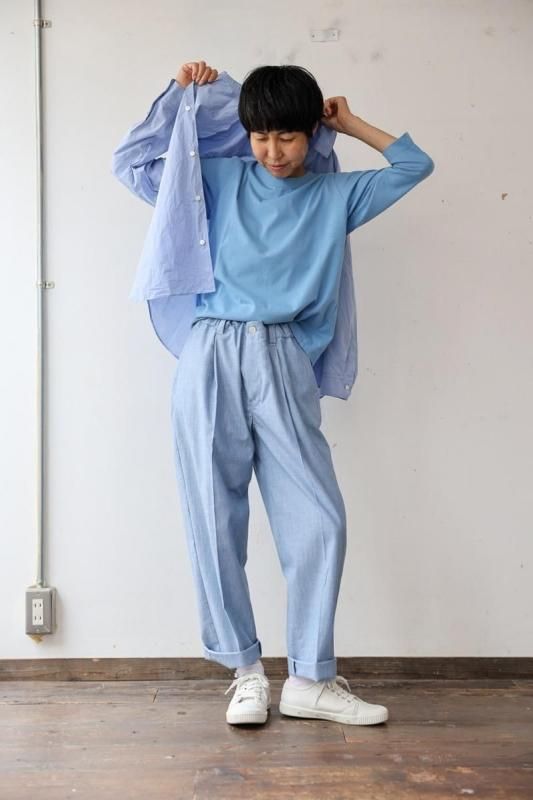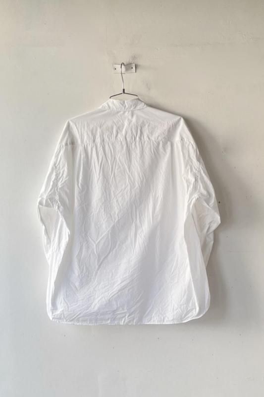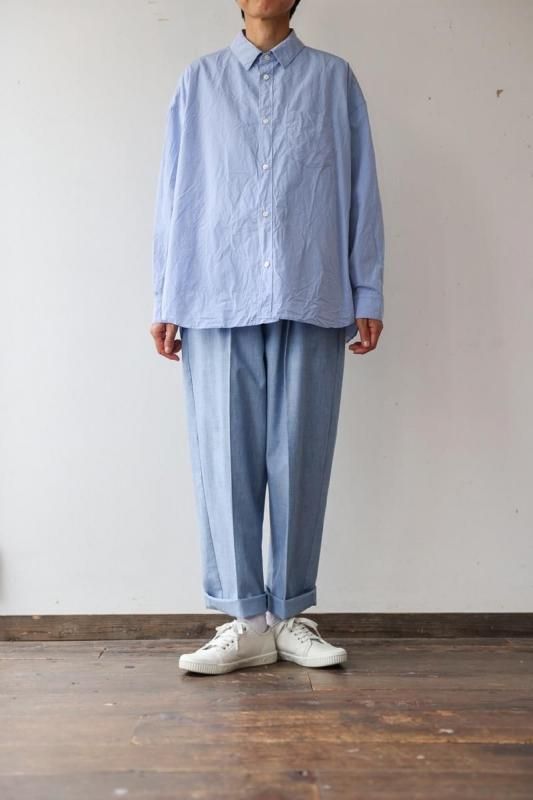 商品名 ゴーシュ ピマタイプライター レギュラーカラーシャツ 素材 綿100% カラー ホワイト、ライトブルー サイズ 2 (ワンサイズ) 肩幅 58.5 身幅 62.5 着丈 前69.5 /後ろ73.5 袖丈 49.5 (cm) *個体差があります。サイズの多少の誤差はご了承くださいませ。 2025年秋冬。ゴーシュの新作シャツです。 レギュラーカラーシャツは、 ふわっと着ていただく、ゆるいシルエットになります。 シンプルで雰囲気のあるシャツです。 ボタンを開けて羽織り感覚で着ていただくのも、 いい感じだと思います。 サックスのワントーンコーディネートで。 身長160センチ ライトブルー着用 インナーのTシャツ homspun 7分袖Tシャツ(サックスのLサイズ) 超長綿ピマコットンの極細糸を密に織り上げた、綿100%のタイプライター生地。 ごわつき、かたさはありませんが、パリッとしたハリ感とほんのり光沢感を感じる上品な素材。 洗い加工により、あえて洗いざらしの強めのシワ感がドレスダウンになり、 カジュアルに使えます。 (同じ素材でスタンドカラーシャツもあります。こちら→*) ラフな強めのシワ感が特徴です。洗いざらしで着ていただけます。 (1点1点シワの入り方は異なります。予めご了承くださいませ。) 袖丈はやや長め。 袖口はカフスのデザインですので、 お好みでロールアップして下さいね。 ライトブルー ホワイト