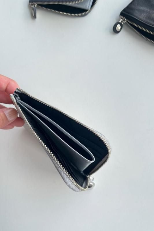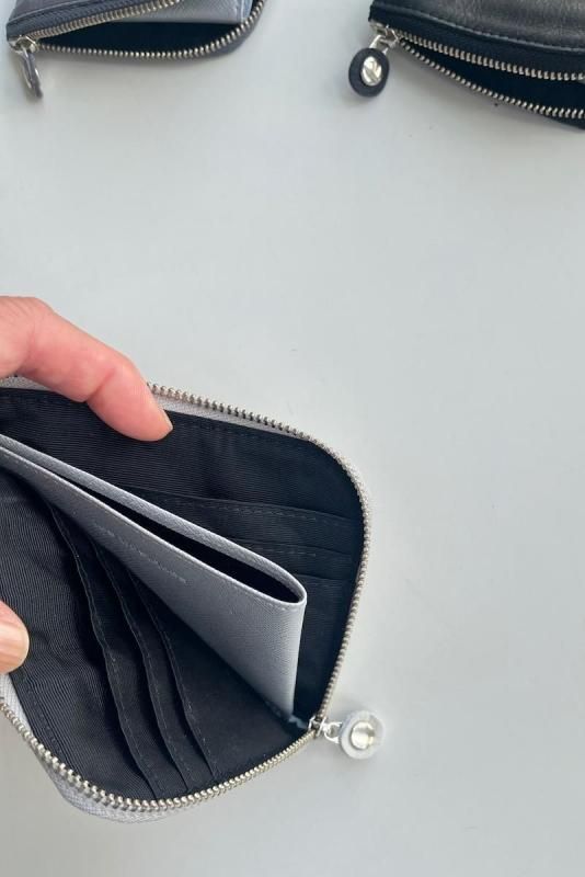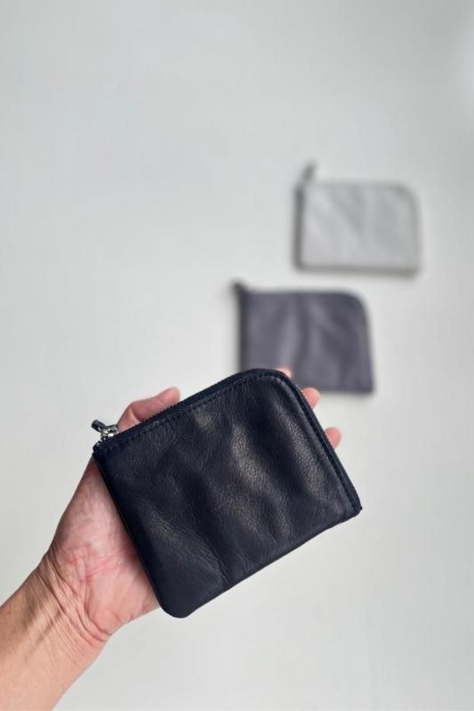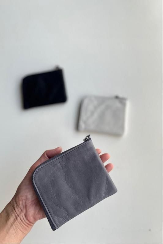 素材 牛革 カラー アイスグレー(白に近い、ごくわずかに薄いミントグレーのような色味) グレー(定番のグレーは雰囲気のある色です。) ブラック(定番カラー) ネイビー(黒に近い濃紺、定番カラー)*写真なし サイズ 横 11.5 高さ 10 (cm) *個体差あります。サイズの多少の誤差はご了承くださいませ。 日本製 久しぶりの再入荷です。 小さめのバッグやポシェットで身軽にお出かけしたい時や荷物を少なくしたい時に。 コンパクトなサイズ感のミニウォレットです。 *プライス変更になりました。何卒ご了承下さいませ。 グレー(定番のグレーは雰囲気のある色です。) 洗い加工を施した牛革を使っているので軽くて柔らかく、 雰囲気のあるシワ感がカジュアルにも持てるles basiques (レ・バジック)のシリーズ。 Made in Japanのバッグブランドですが、ヨーロッパのテイストを感じる風合も魅力です。 ※オリジナルのレザーはしなやかで、ビンテージ感のある風合いが魅力です。 天然皮革を使用し加工を施したハンドメイド商品です。色ムラ・シワや質感には個体差がございます。 天然素材の風合いと味わいをお楽しみくださいませ。 L字のファスナーを開くと真ん中に小銭用の仕切り、 両サイドに二つ折りしたお札とカードが収納できます。 *カード入れは6枚。 内側の仕様はどの色も同じになります。 *黒の裏地にシルバーの仕切りポケット。 ブラック アイスグレー(白に近い、ごくわずかに薄いミントグレーのような色味) アイスグレー(白に近い、ごくわずかに薄いミントグレーのような色味) ブラック(定番カラー) グレー(定番のグレーは雰囲気のある色です。) ※パソコンのモニター環境により、商品の色味が実物と異なって見える場合がございます。 予めご了承ください。