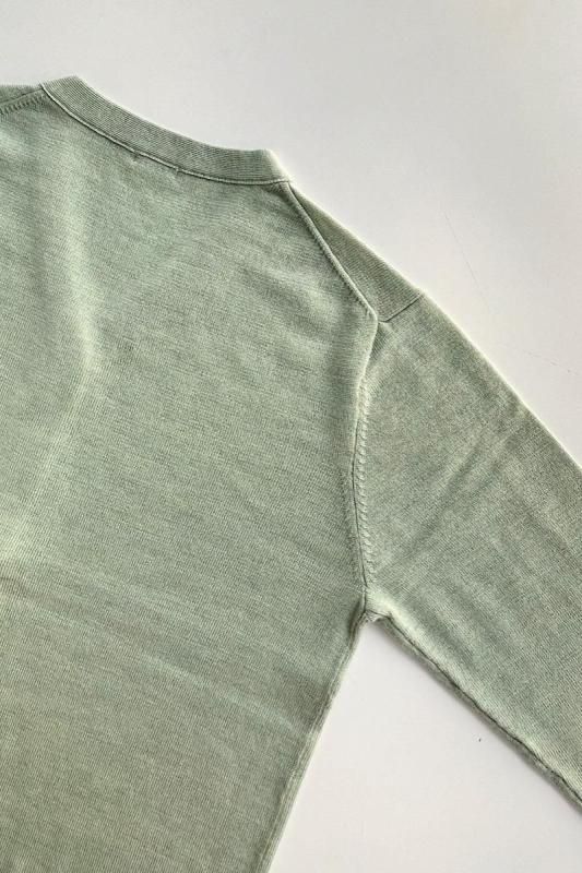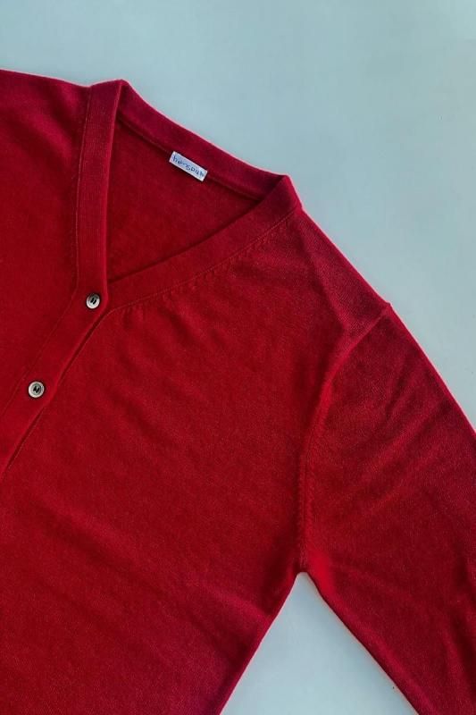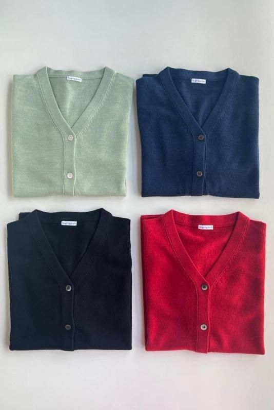 素材 毛100% カラー セージ杢 レッド ブルー杢 ブラック サイズ フリー 肩幅 41 身幅 50 着丈 58 袖丈 57 袖口幅 10(cm) *ニット製品につき伸縮性があります。伸ばさずに平置きした状態で測りました。 個体差がありますので、サイズの多少の誤差はご了承くださいませ。 表面がなめらかで毛羽が少なく、光沢感のある梳毛(そもう)ニット。 チクチクしにくく、柔らかく、程よい厚みもあります。 腰が隠れる安心の丈、着やすいサイズ感と浅めのVネック。 シンプルなガーディガンは意外とないですよね。 右上より時計回りに。 ブルー杢 レッド ブラック セージ杢 ブルー杢 *別売りのネックレスと同じ素材、色展開です。セットにもなります。 ブルー杢 セージ杢 レッド ブラック ※パソコンのモニター環境により、商品の色味が実物と異なって見える場合がございます。 予めご了承ください。