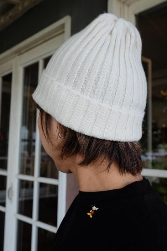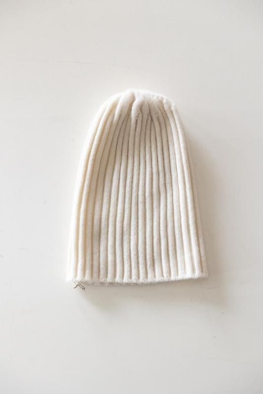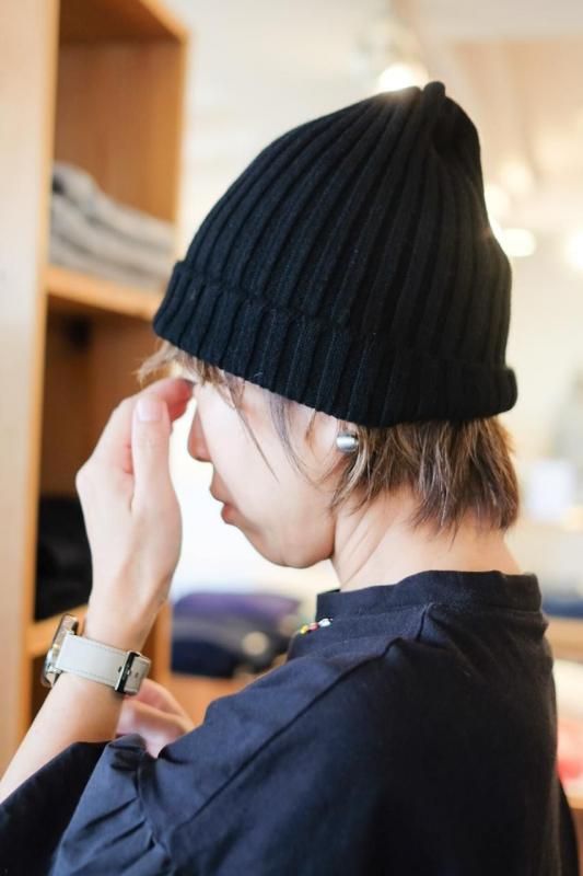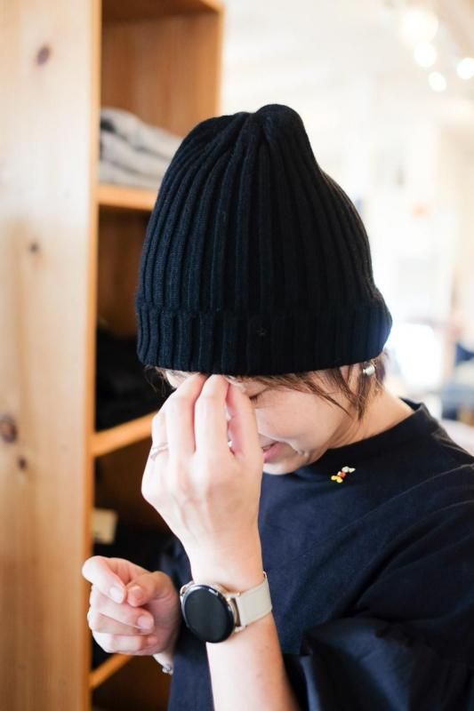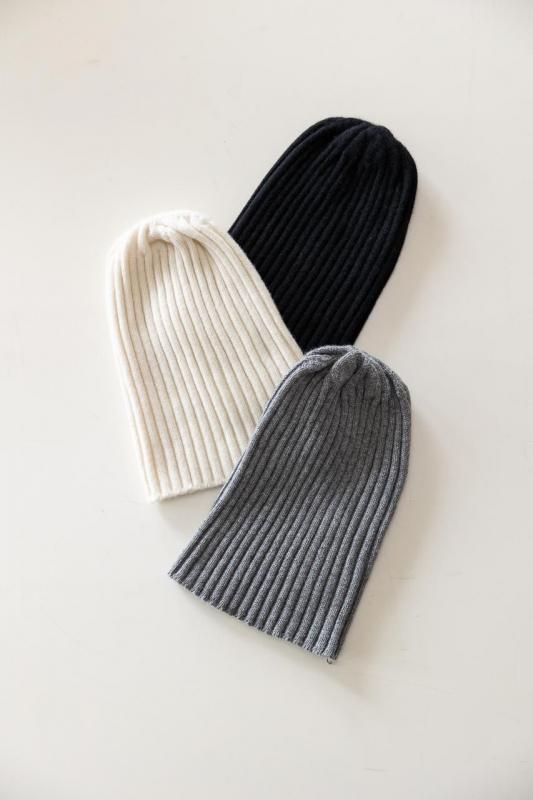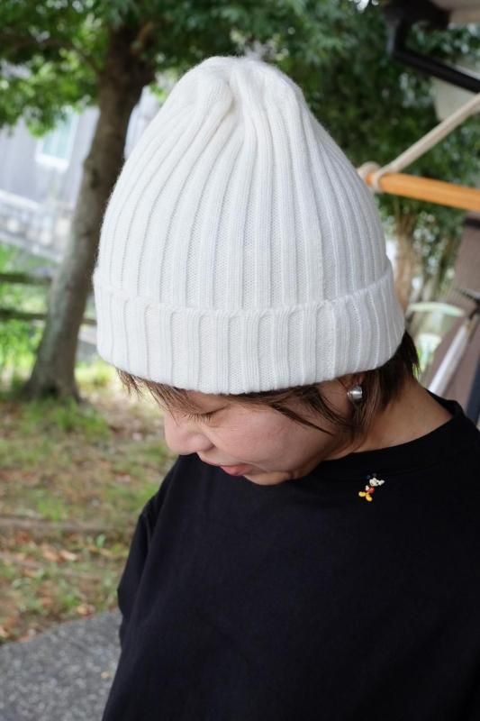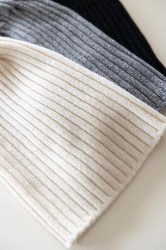 素材 カシミヤ100% カラー オフホワイト、グレー、ブラック サイズ フリー ANSPINNENのFine Soft Cashmere Knit Beanie ファインソフトカシミア ニットキャップ ふっくら、ふんわりと肌触りが心地よい温かなカシミヤ100%のニットキャップ。 カシミヤの糸は繊細で柔らかなカシミヤ山羊の産毛のみを集めて作られています。 2本の糸を撚ることでふくらみや強度が増し、 ツヤがありフカっとした肌触りになっています。 使うほどに肌になじみ、もっとフワフワに変化していきます◎ ブラック着用 オフホワイト着用 カラー 手前から グレー、オフホワイト、ブラック
