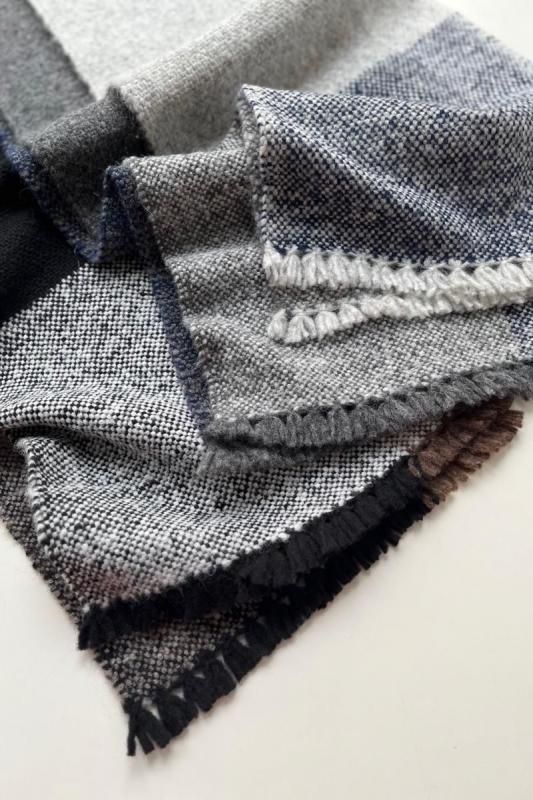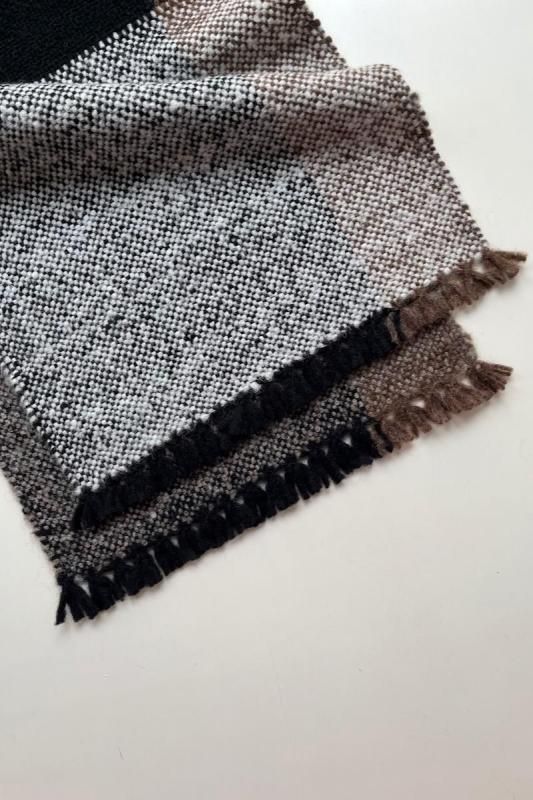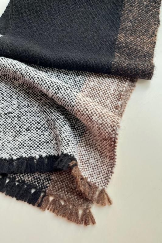 素材 ベビーアルパカ43%、ウール43%、ナイロン14% カラー ライトグレー (うすいグレー) チャコールグレー(濃いグレー) ブラック サイズ 約 33×180(cm) *フリンジは約2センチですがサイズには入れていません。 *ニット製品につき個体差もあります。 サイズの多少の誤差はご了承くださいませ。 ペルー製 ふわふわで、軽くて柔らか。 ベビーアルパカとウールを混紡した、手織りのストールです。 ざっくりとした編み地に素朴な色使い。 どうやって巻いても、いい感じに見える織り柄が、シンプルなお洋服のアクセントになります。 ただ肩にかけるだけ。 ひと巻きするだけ。 結ぶだけ。 シンプルに使うだけでも雰囲気が出ます。 幅も約33センチと巻きやすい長方形のストールです。 小さめのフリンジもアクセント。 上より ライトグレー (うすいグレー) チャコールグレー(濃いグレー) ブラック * * *繊維が極めて柔らかで独特のぬめり感が特徴です。 羊毛に比べ、どうしてもアルパカ特有の多少の毛羽抜けがあるかと思います。 気になる場合は同系色のお洋服とのコーディネイトをお勧めします。 ライトグレー(うすいグレー) ライトグレー(うすいグレー) ライトグレー。幅を適当に半分に折って肩からかけて。 くるっとひと巻き。(このまま前でくるっと縛れる長さです。) * * チャコールグレー(濃いグレー) チャコールグレー(濃いグレー)を肩からかけて。 くるっとひと巻き。 * * ブラック ブラックと肩からかけて。 片方だけ後ろにまわして。 ※パソコンのモニター環境により、商品の色味が実物と異なって見える場合がございます。 予めご了承ください。