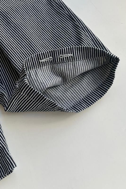 商品名 homspun 10オンスデニム ギャザーパンツ 素材 綿100% カラー ブルー(濃紺)×キナリ サイズ S , M , L (ほぼ丈違い) Sサイズ ウェスト 59センチ〜86センチ 股上 36 股下 48 裾幅 25.5 わたり幅 40.5(cm) Mサイズ ウェスト 59センチ〜86センチ 股上 37 股下 57 裾幅 25.5 わたり幅 41(cm) Lサイズ ウェスト 59センチ〜86センチ 股上 37 股下 66.5 裾幅 25.5 わたり幅 41.5(cm) *個体差あります。サイズの多少の誤差はご了承くださいませ。 * ウエストは総ゴム。内側の左脇にゴム通し穴が空いていますので、ゴム交換可能です。 2025年秋冬。今年も登場ホームスパン の楽ちんデニム。 ワイドシルエットのパンツです。 裾に向かってほんのり細くなる、丸みのあるシルエットですので、 ヒップのあたりにゆとりが出て、可愛いラインが特徴。 両サイドにポケット。太い糸のステッチもアクセントです。 身長160センチ Mサイズ着用 今年は使いやすいヒッコリー柄です。 *参考までに、去年のヒッコリーは白い部分が多く、ストライプも太め。 今年はネイビー(濃紺)の部分が多く、細いストライプですので、 去年のヒッコリーをお持ちでも、今年のとはまた雰囲気が違います(笑)。 去年のヒッコリーはこちら→* このパンツはSサイズ、Mサイズ、Lサイズとお選びいただけますが、違いは丈の長さです。 (他はほぼ同じサイズ感です。だからといって、丈だけを短くしている訳ではなく、 ほんの少しづつパターンも変えているそうです。) 10オンスデニムは、ごわつきもなく、薄すぎず、厚過ぎず、長いシーズン履いていただけます。 透け感も気にならないです。 *デニム生地のオンスとは、重さのことになります。 数字が小さいと軽くなります。(一般的なデニムは、13オンス前後が多いです。) Mサイズ着用 コーディネイト ゴーシュ ピマタイプライター レギュラーカラーシャツ(ホワイト) ハーフコートとも相性がいいです。 homspun ウールフラノコート(ネイビーのMサイズ)¥85,800 (in tax) 裾の内側にボタンホールの穴があいていますので、 お好みで紐を通して絞る事もできます。 ※パソコンのモニター環境により、商品の色味が実物と異なって見える場合がございます。 予めご了承ください。