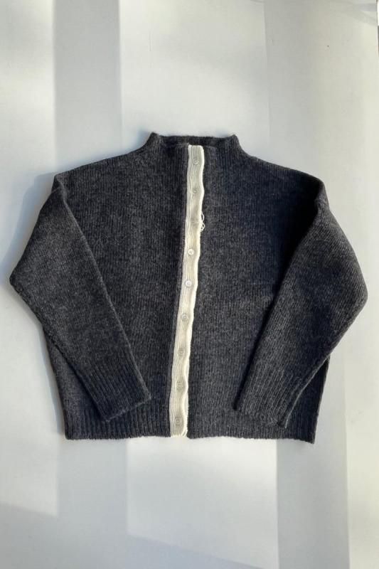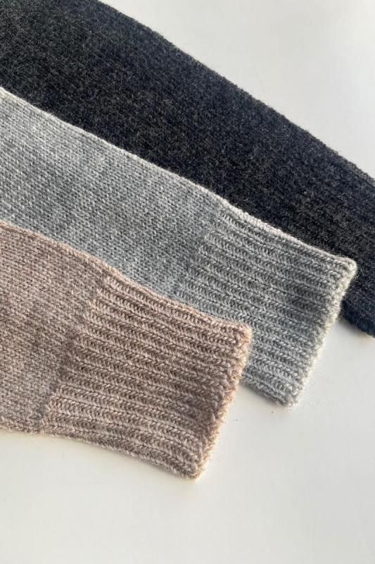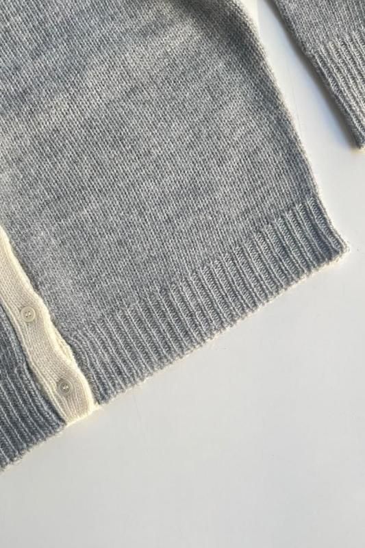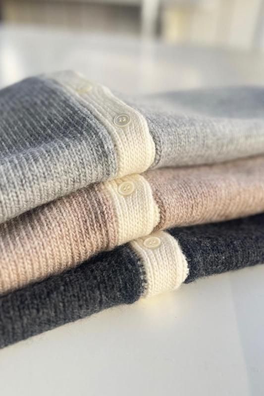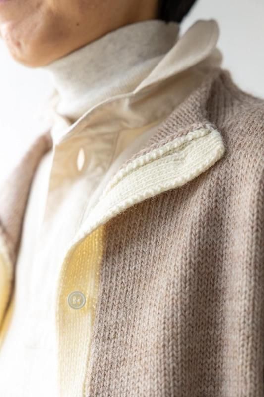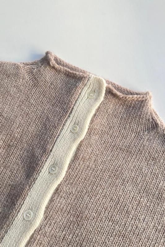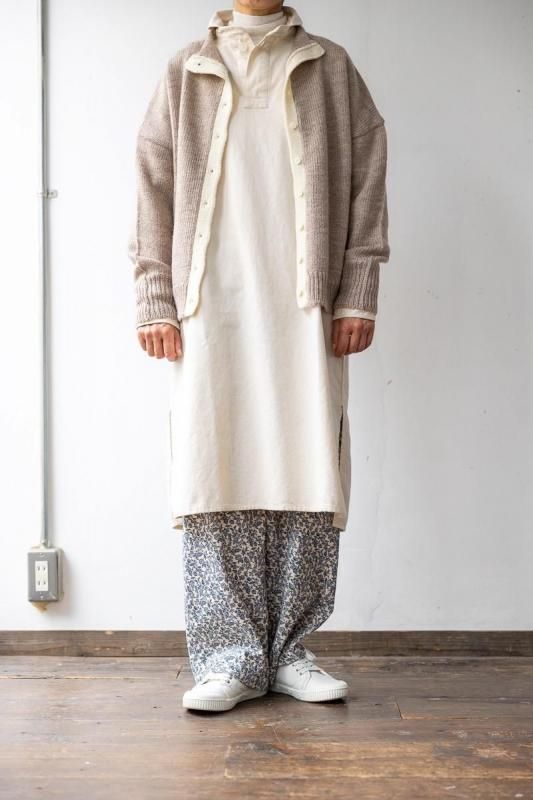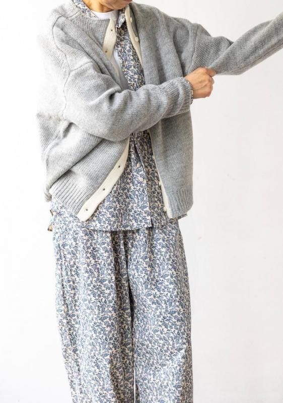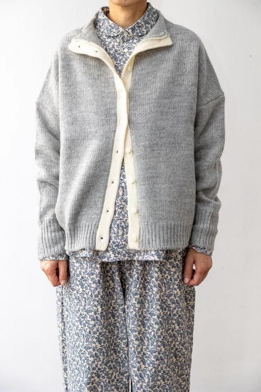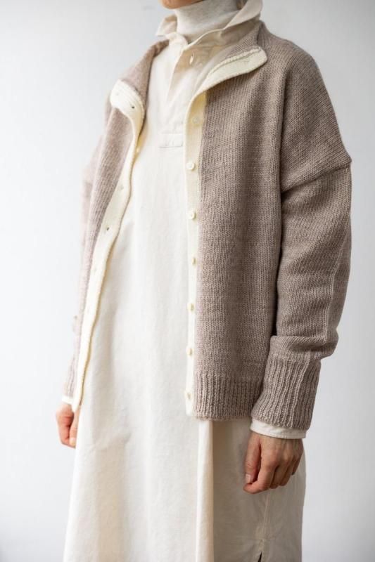 素材 毛100% カラー ライトグレー *新色 ナチュラル (ベージュ) チャコール サイズ フリー サイズ ゆき丈 78 身幅 61 着丈 57 裾幅 50 袖口幅 10 (cm) *ニット製品につき、サイズの多少の誤差はご了承くださいませ。 伸ばさずに平置きした状態で計りました。 2025年冬物のご紹介です。 こちらは約2年ぶりに再登場のざっくりしたニットカーディガン。 新色はライトグレー。他の2色は継続カラーです。 プライスが変更になりましたが、ご了承下さいませ。 3色共通、オフホワイトの前たてがアクセント。 身長160センチ 新色のライトグレー着用 甘撚りの糸を使用し、ソフトな風合いに仕上げたざっくりした風合いのニットカーディガンです。 重くはありませんが、着ていて疲れない程度の、寒い時期には丁度いいくらいの重みと厚みです。 ざっくりしている割には(個人差ありますが)チクチク感はほとんど気になりません。 上より ライトグレー *新色 ナチュラル (ベージュ) チャコール ハイネックまで高くない、首に沿うくらいのボトルネックになります。 ナチュラル (ベージュ) 肩はラインが程よく馴染むドロップショルダー、着心地ラクなシルエット。 ライトグレー ライトグレー チャコール ナチュラル(ベージュ) ※パソコンのモニター環境により、商品の色味が実物と異なって見える場合がございます。 予めご了承ください。
