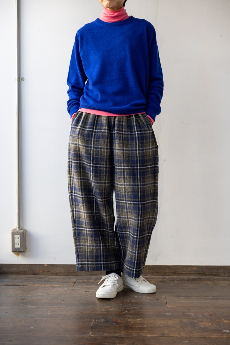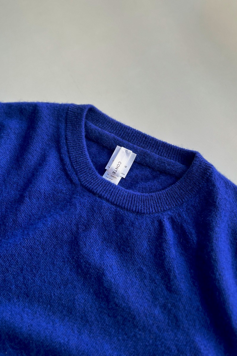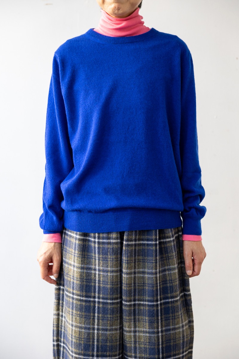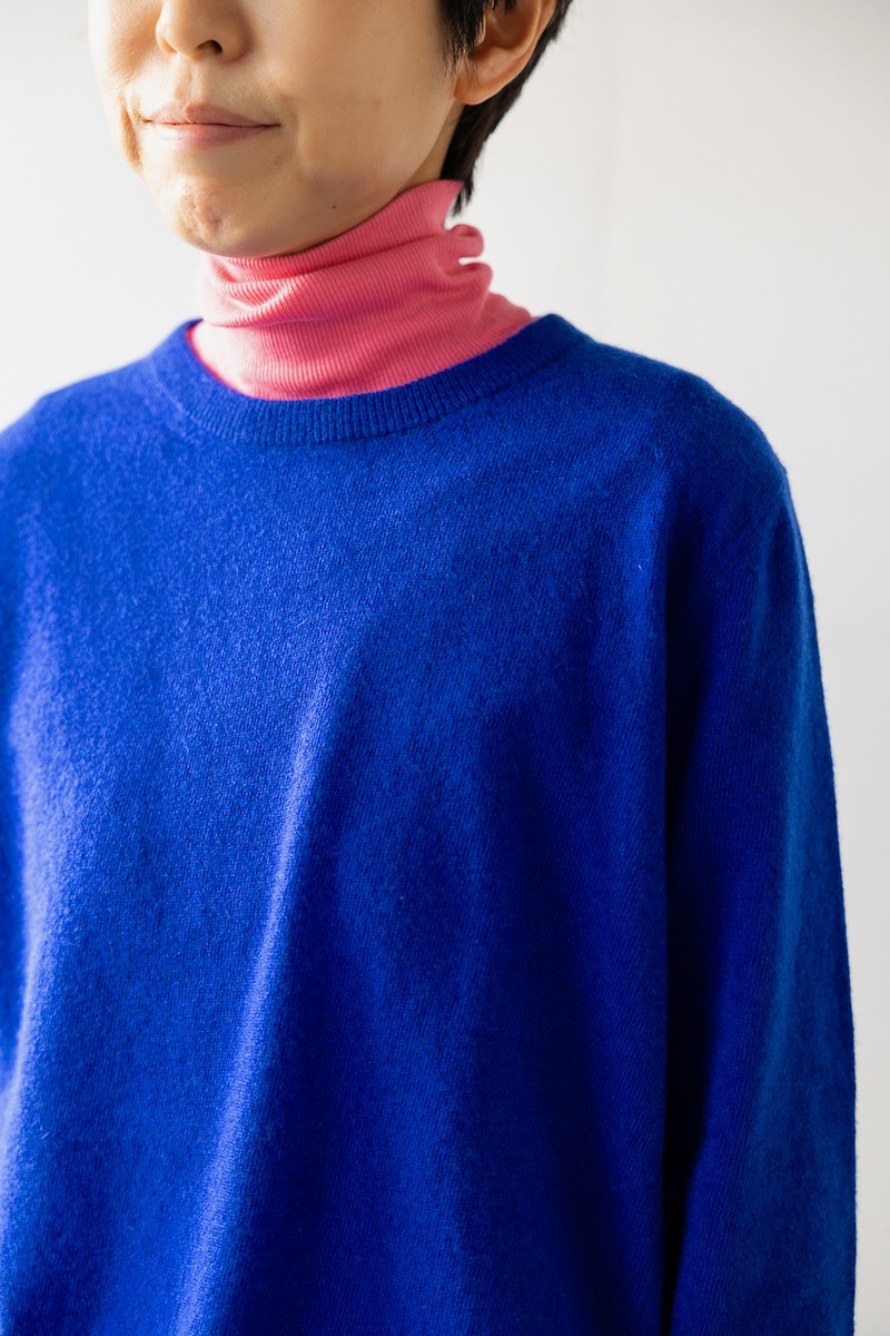 素材 カシミヤ100% カラー ブルー、グレー サイズ (*ユニセックスサイズです。ゆったりしています。Sサイズが一番小さいです。) S、M サイズS 肩幅 37 身幅 47 着丈 62 袖丈 56.5 (cm) サイズM 肩幅 39 身幅 50 着丈 65 袖丈 57 (cm) *個体差あります。 ニット製品につきサイズの多少の誤差はご了承くださいませ。 上質な素材を使って丁寧に作った日常のためのリラックスウエア。 ヤエカ の別ライン CONTEMPO(コンテンポ)です。 カシミヤヤギのうぶ毛をきめ細やかに編み込んだカシミヤニット。 天然の毛にはよれがあるので、通常は形を整えるために、毛に力をかけて撚るのですが、 コンテンポのニットは、形を整えるための無理な加工はやめて、 自然に近い状態の毛糸を仕立てています。 身長160センチ ブルーのSサイズ着用 そのため、このニットにはねじれがあるのですが、 そのぶん、カシミヤの軽さと温かさを感じでいただけます。 自然なカシミヤを感じてみてください。 リラックス感のあるゆるめのシルエット。 袖も長めですが、袖口は柔らかなリブですので、クシュっと留まります。 ブルー グレー ※パソコンのモニター環境により、商品の色味が実物と異なって見える場合がございます。 予めご了承ください。