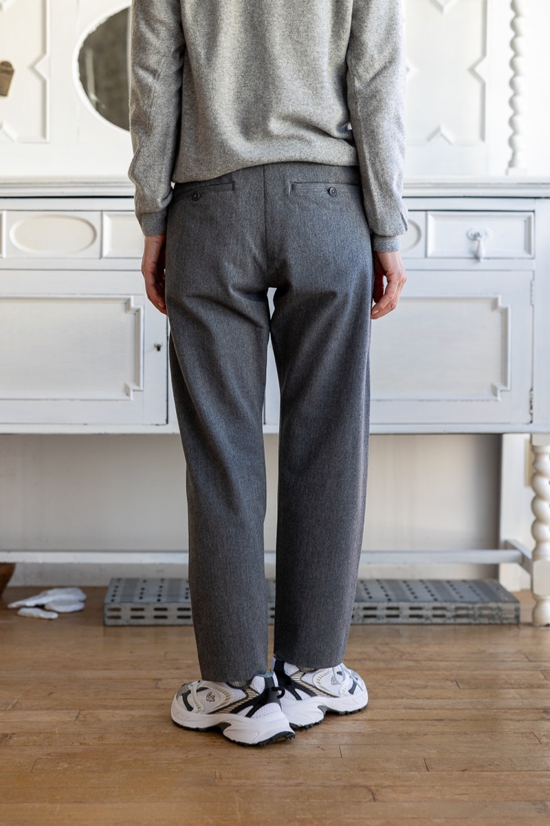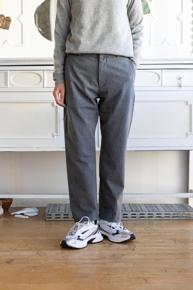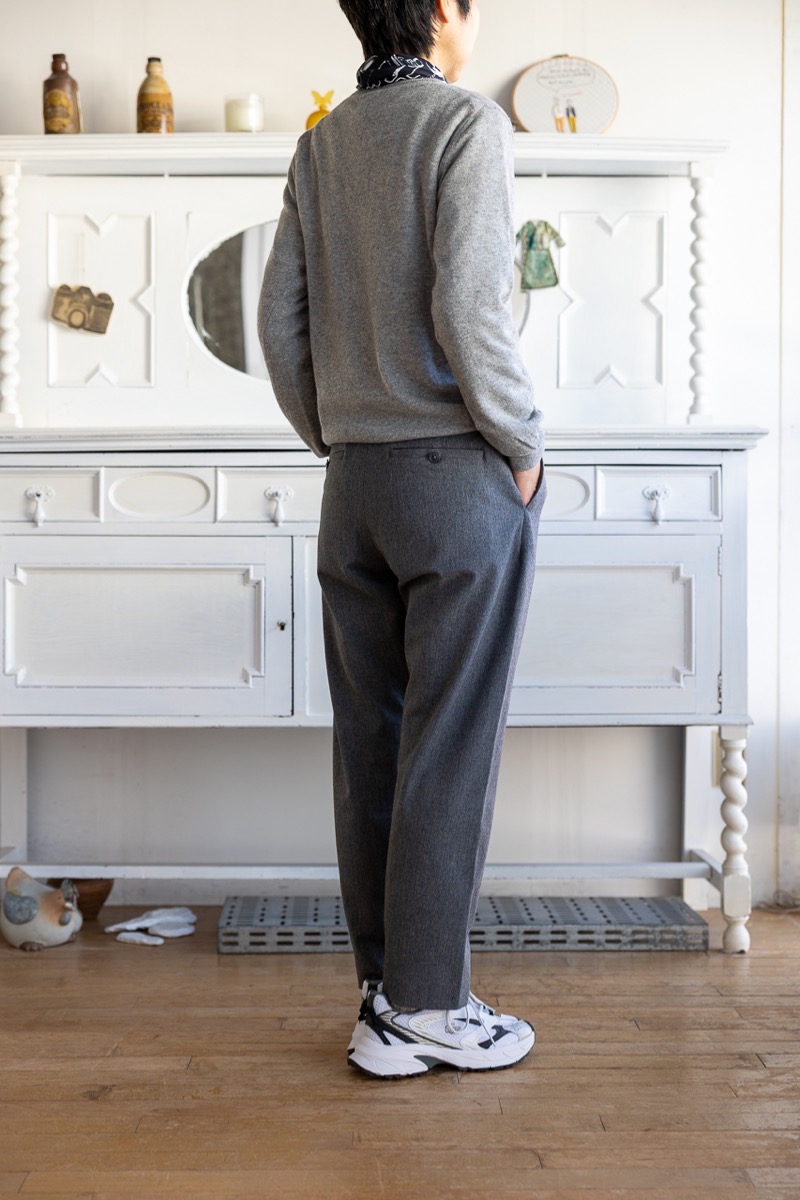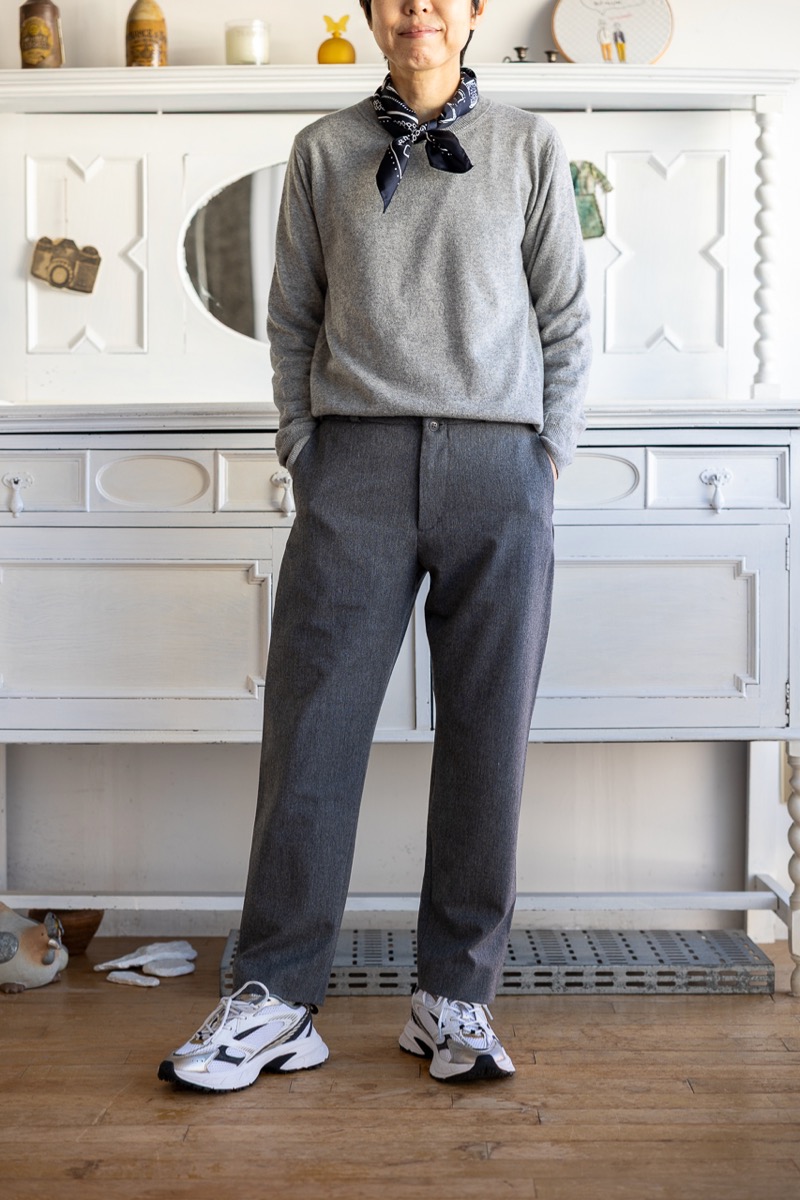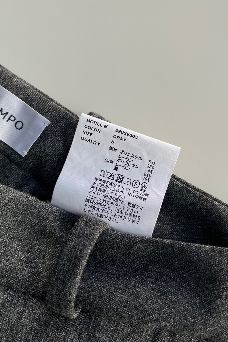素材 ポリエステル63% レーヨン33% ポリウレタン4% 別布(ポケット) レーヨン64% 綿36% カラー グレー(やや濃いめの杢グレー) ダークチャコール(ほぼ黒に近く、ほんのり杢) サイズ S 、M、L *今まではSとMの2サイズでしたが、新たにLサイズも加わり、3サイズ展開になりました。 サイズS ウェスト 68 股上 27 股下 65 裾幅 18 わたり幅 30 (cm) サイズM ウェスト 72 股上 28 股下 67 裾幅 19.5 わたり幅 31 (cm) サイズL ウェスト 75 股上 29 股下 69 裾幅 21 わたり幅 32 (cm) *伸縮性のある素材です。伸ばさずに平置きした状態で測りました。 個体差あります。サイズの多少の誤差はご了承くださいませ。 上質な素材を使って丁寧に作った日常のためのリラックスウエア。 ヤエカ の別ライン CONTEMPO(コンテンポ)。 カジュアルな中にも上品さを感じさせてくれるパンツ。 見た目にきれいな生地ですが、着心地はやわらかくしなやか。 たてよこ2WAYに伸縮する生地ですので、 とても動きやすく気持ちよく穿いていただけます。 コーディネイト次第で、きれいめカジュアルから、フォーマルまで。様々なシーンに対応する万能パンツです。 身長160センチ グレー(やや濃いめの杢グレー)のSサイズ着用 ボリュームの出過ぎない、スッキリしたテーパードシルエット(裾に向かって細くなったシルエット)ですが、 ややストレートに近いストンとしたシルエットです。 両脇に縫い目のないデザインで立体的なシルエットは脚を綺麗に見せてくれます。 股上は深すぎず、スッキリと。 動きも楽ちん! グレー(やや濃いめの杢グレー) ダークチャコール(ほぼ黒に近く、ほんのり杢) ※パソコンのモニター環境により、商品の色味が実物と異なって見える場合がございます。 予めご了承ください。