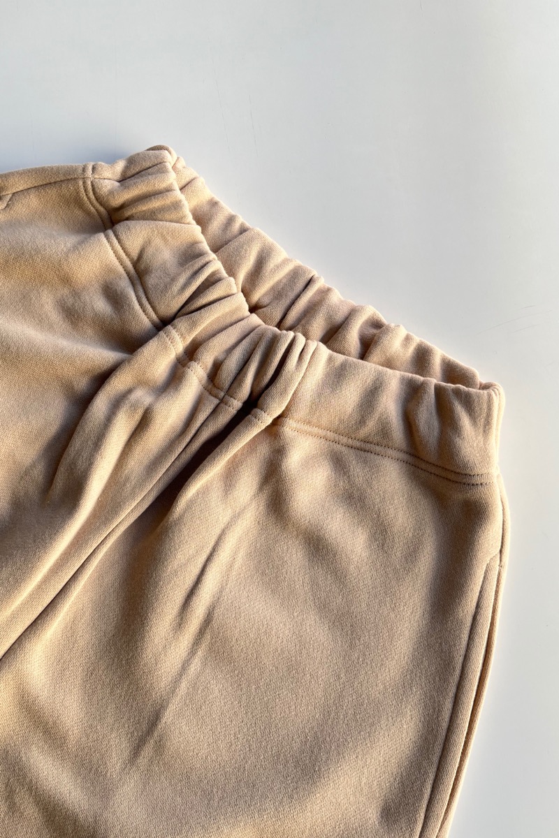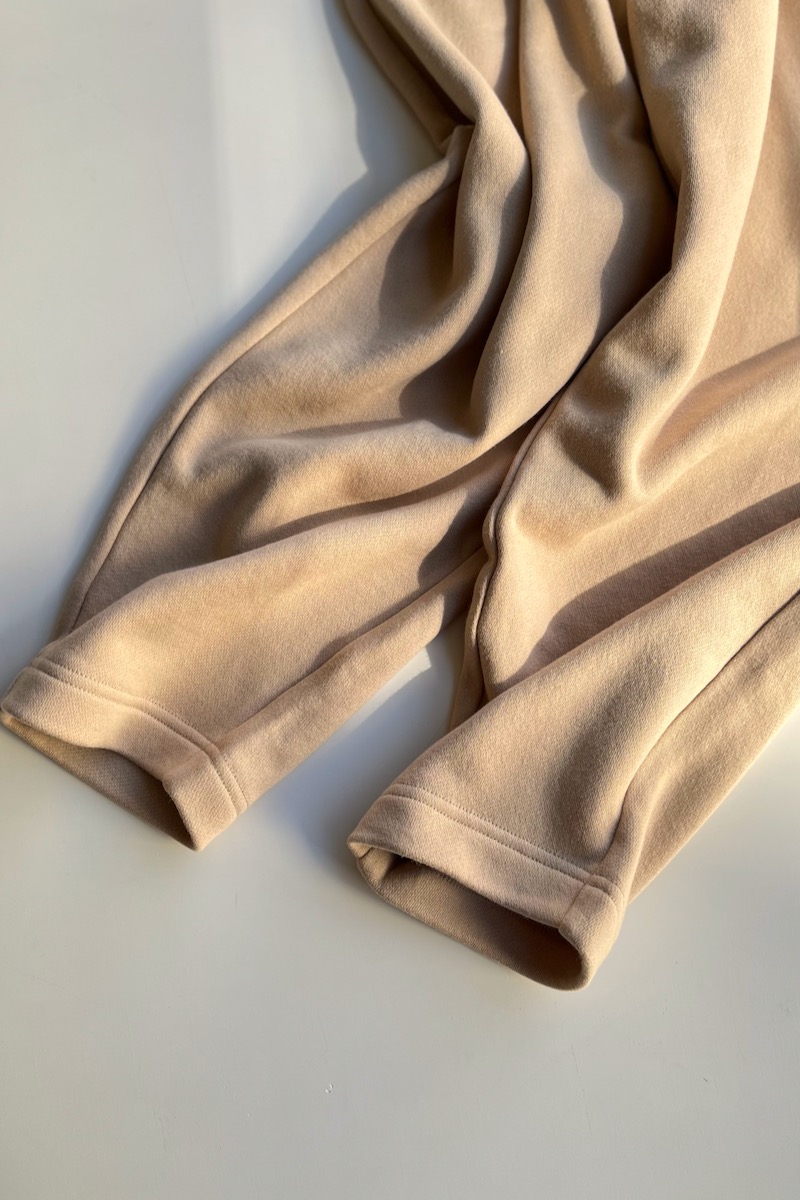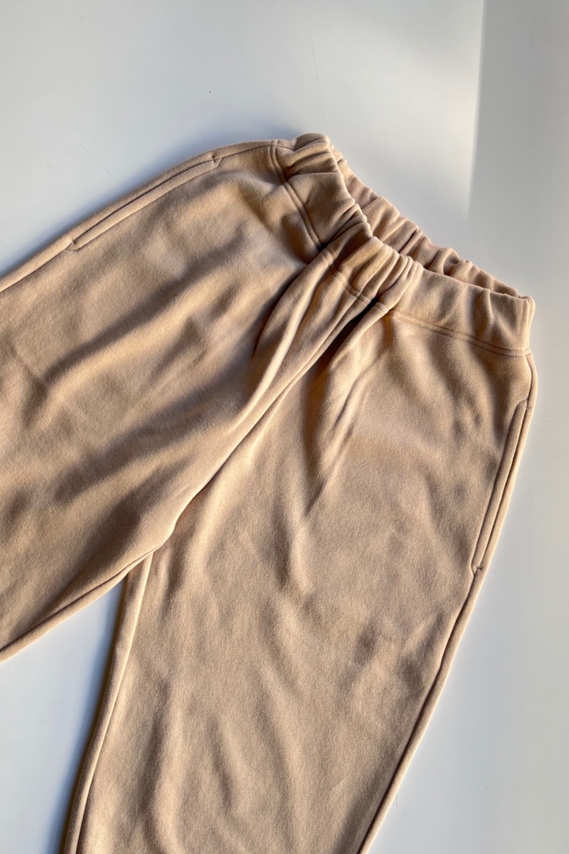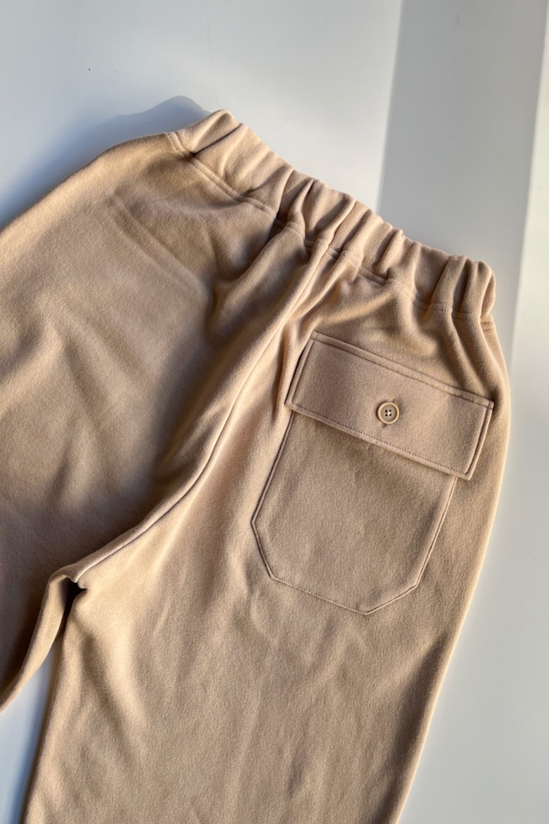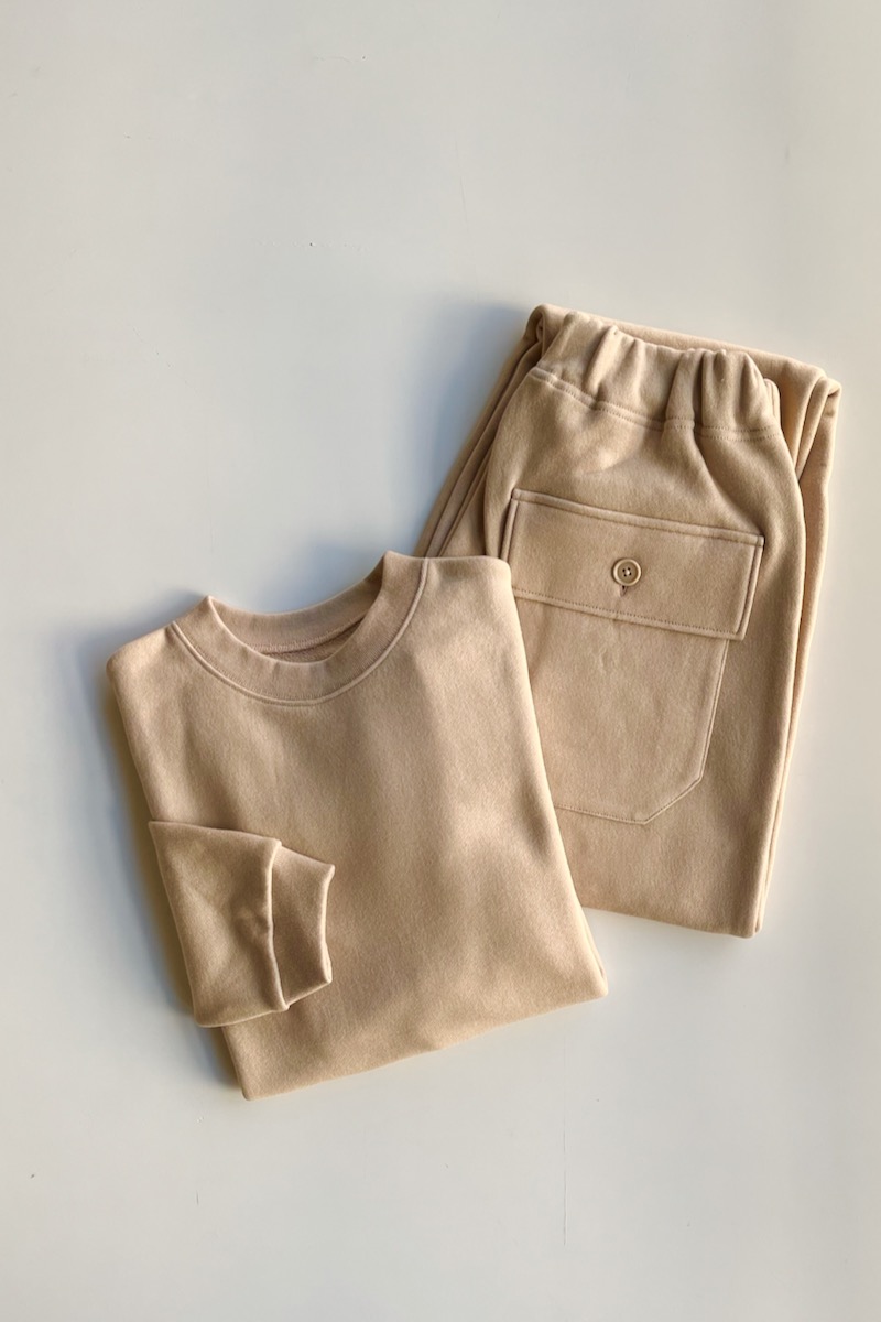 素材 綿100%(インド超長綿) カラー ベージュ(明るいベージュ) チャコール サイズ S、M *ユニセックスのS、M、Lサイズの展開ですが、 サスコンではSとMの取り扱いになります。 Sサイズ ウェスト 約60〜78 *紐で絞れます。 股上 34 股下 61 裾幅 14.5 わたり幅 33.5(cm) Mサイズ ウェスト 約66〜84 *紐で絞れます。 股上 37 股下 62.5 裾幅 15.5 わたり幅 35(cm) *ウエストは総ゴムと紐でサイズ調整可能です。 *伸縮性のある素材です。伸ばさずに平置きした状態で測りました。 *個体差があります。サイズの多少の誤差はご了承くださいませ。 はき心地がラクなスウエットパンツは、ルームウエアのイメージがありましたが、 普段のおしゃれにも履けるスウエットパンツが増えてきましたね。 2026年、春の新作。 ロロのスエットパンツは、裾に向かって細くなるペグトップ型。 テーパードに比べて、ペグトップの方がヒップ周りが膨らんだようなシルエットで、 丸みのあるシルエット、やや短めの丈で、可愛らしさがあります。 両脇にポケット、右ヒップにパッチポケットがあります。 インド超長面を使用した、中肉の裏毛を使用しています。 とても柔らかく、なめらかな肌ざわりです。 ベージュ(明るいベージュ) チャコール トレーナーとセットアップにもなります。 身長160センチ 上下ともベージュのSサイズ着用 コーディネイト ゴーシュ ベビーアルパカウールストール *パソコンのモニター環境により、商品の色味が実物と異なって見える場合がございます。 予めご了承ください。