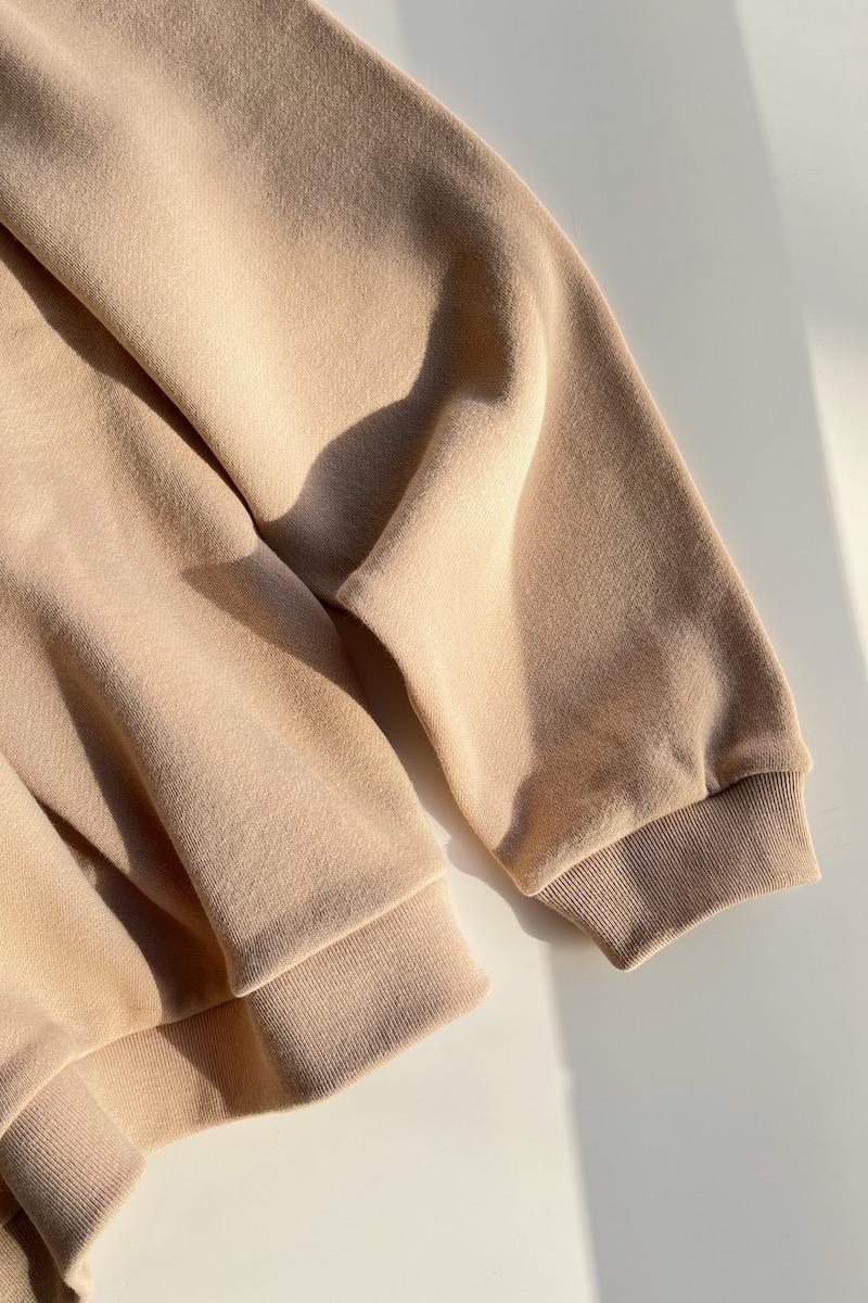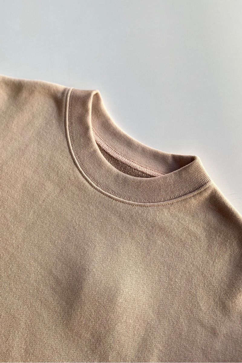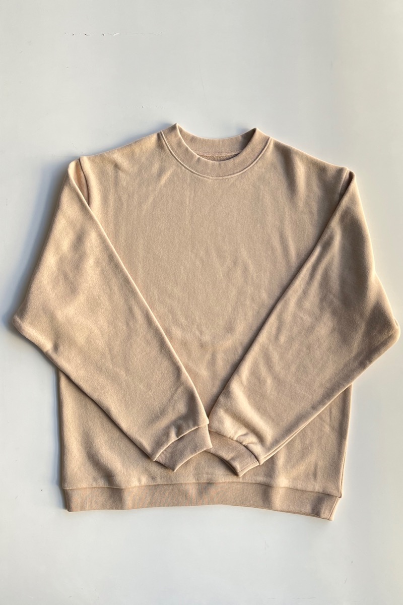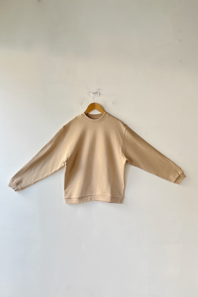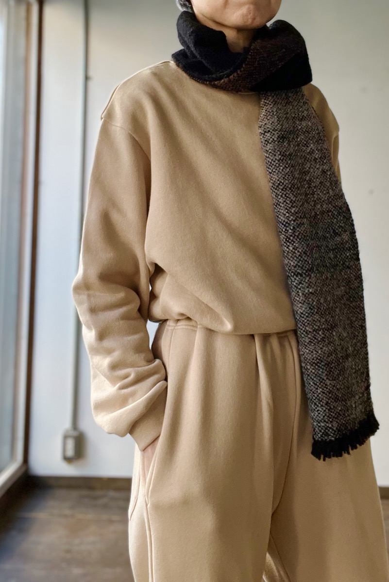 素材 綿100%(インド超長綿) カラー ベージュ(明るいベージュ) チャコール サイズ S *ユニセックスのS、M、Lサイズの展開ですが、 サスコンではSサイズの取り扱いになります。 Sサイズ 肩幅 46 身幅 52.5 着丈 63 袖丈 53 裾幅 46 (cm) *伸縮性のある素材ですが、伸ばさず平置きした状態で測りました。 個体差がございます。多少の誤差はご了承くださいませ。 2026年、春の新作。 シンプルなカタチのロロのスエットは インド超長面を使用した、中肉の裏毛を使用しています。 とても柔らかく、なめらかな肌ざわりです。 何気ないけど、詰まった首元、ゆるめのシルエットが雰囲気あります。 ベージュ(明るいベージュ) 衿、袖口、裾にフライスを使っています。 裾のフライスはあまり絞っていないので、ウエストが締め付けられることはありません。 チャコール スエットパンツとセットアップにもなります。 身長160センチ 上下ともベージュのSサイズ着用 コーディネイト ゴーシュ ベビーアルパカウールストール ※パソコンのモニター環境により、商品の色味が実物と異なって見える場合がございます。 予めご了承ください。