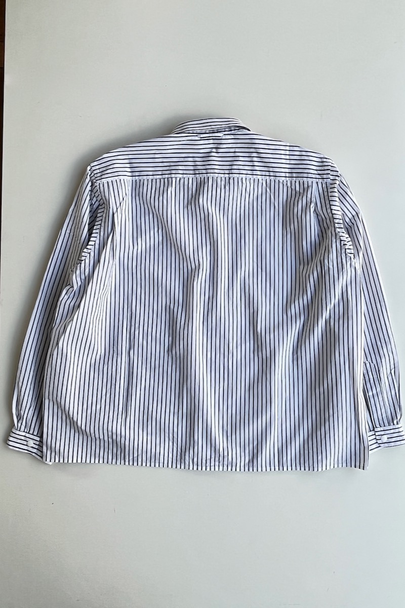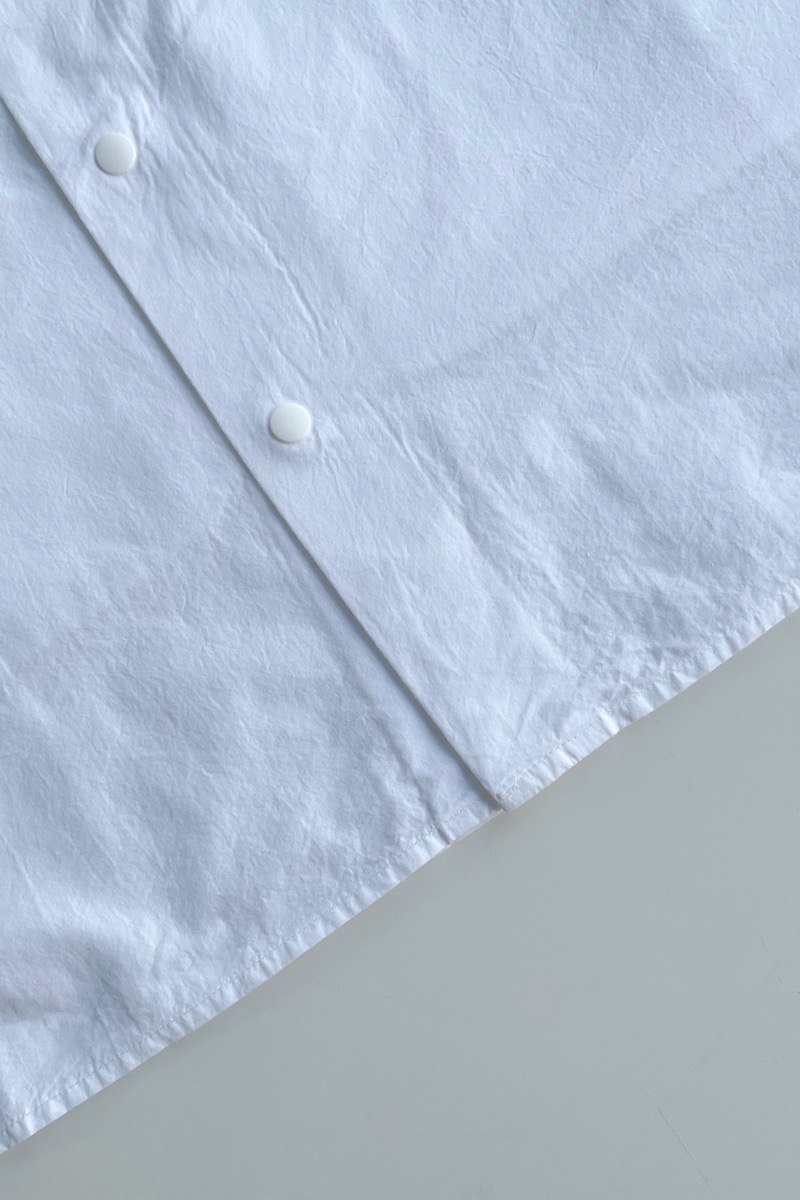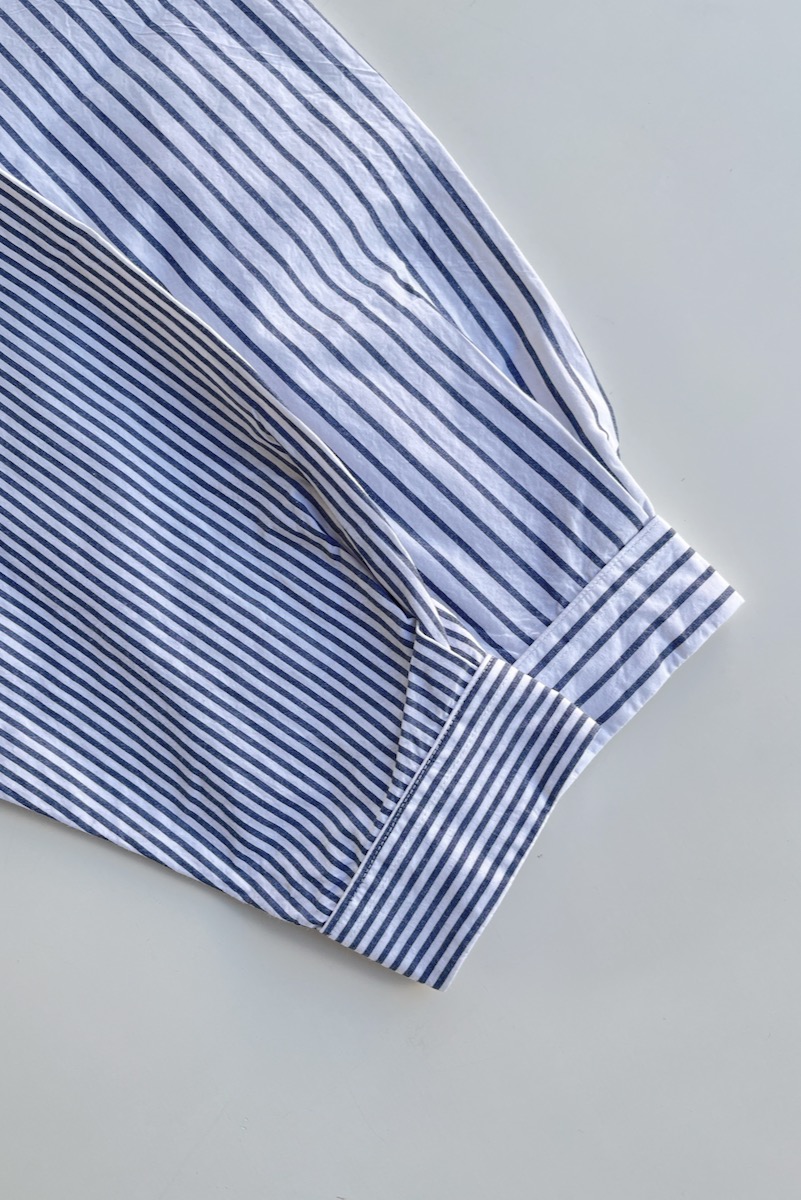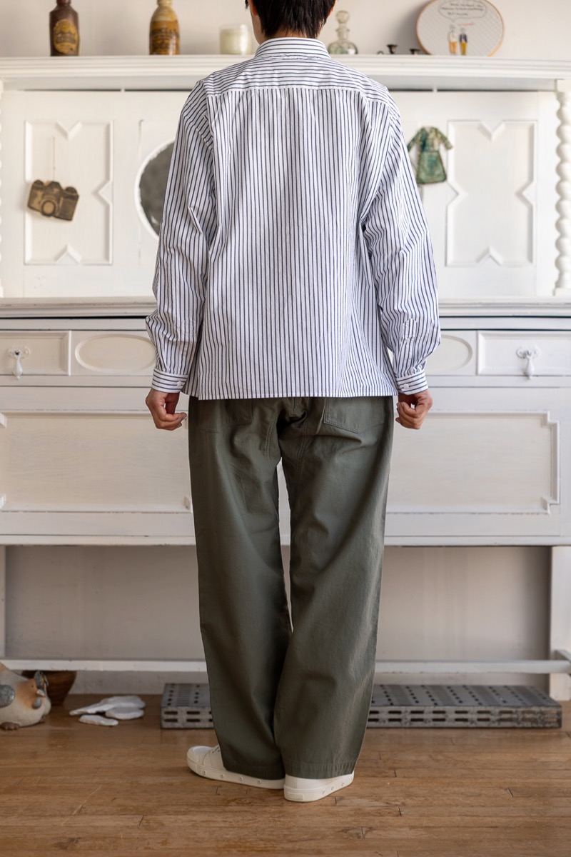 素材 綿100% カラー ホワイト ブロックストライプ(同じ幅のストライプ) ボールドストライプ(白の幅が広い) サイズ (レディス)S , M , L サイズS 肩幅 44 身幅 56.5 着丈 61 袖丈 53 (cm) サイズM 肩幅 45 身幅 58.5 着丈 62 袖丈 54 (cm) サイズL 肩幅 46 身幅 61 着丈 64 袖丈 55.5 (cm) *個体差あります。サイズの多少の誤差はご了承くださいませ。 ゆったりとした身幅で、リラックス感があります。 丈はやや短めのストンとしたスクエアカット。 両サイドにポケットが付いていますので、 ニットの下に着るというよりも、 1枚でシンプルに着たり。 ボタンを開けて軽い羽織として。 上から羽織を羽織ったりする着方をおすすめします。 洗い加工が施してありますので、洗いざらしの自然なシワ感を楽しんでいただく風合いになっています。 着脱も楽なスナップボタンがヤエカ らしい、軽い着心地のシャツです。 身長160センチ ブロックストライプ(同じ幅のストライプ)Sサイズ着用 上:ボールドストライプ(白の幅が広い)*白の分量が多いのでより爽やかな雰囲気。 下:ブロックストライプ(同じ幅のストライプ)*パキッとした雰囲気。 ボールドストライプ(白の幅が広い)Lサイズ着用 Lサイズを羽織って。 ノーアイロンの洗いざらしの風合いを楽しめますが、 お好みでアイロンをかけたい場合はお気をつけ下さい。 *品質表示タグにも記載してありますが、 ボタンにはアイロンを当てないでください。 (アイロンの熱でボタンが溶けてしまう場合があるため) ホワイトのMサイズ着用 Mサイズを羽織って。 ホワイト ブロックストライプ(同じ幅のストライプ) ボールドストライプ(白の幅が広い) ※パソコンのモニター環境により、商品の色味が実物と異なって見える場合がございます。 予めご了承ください。