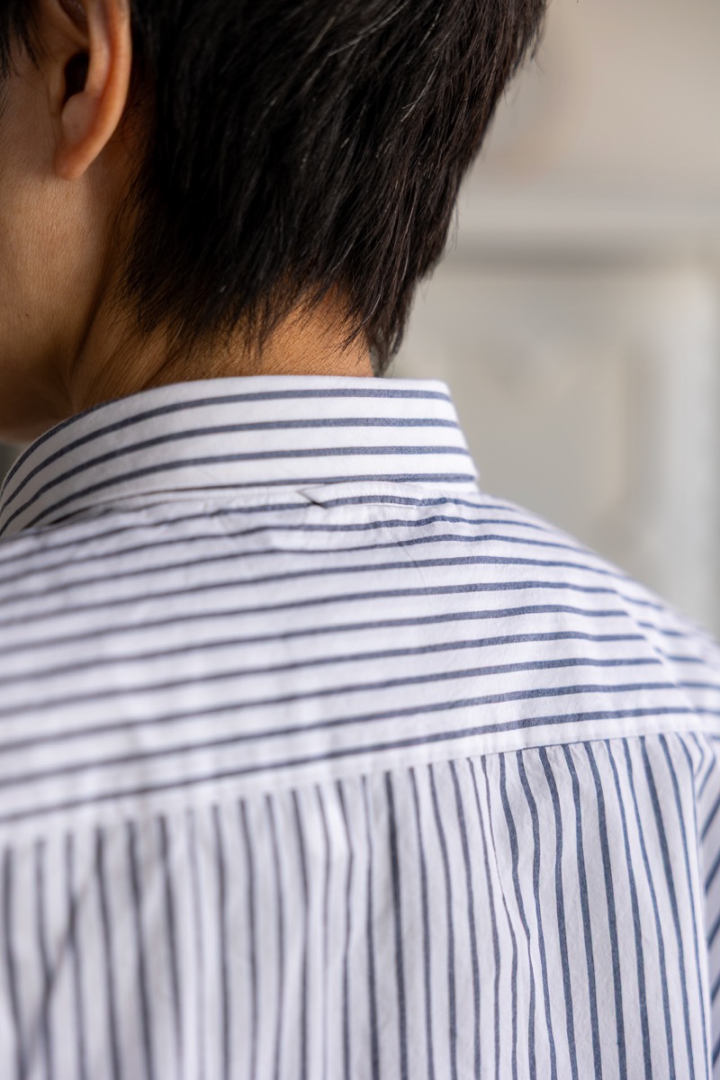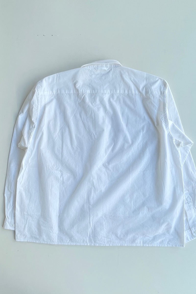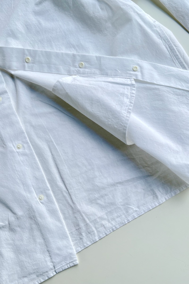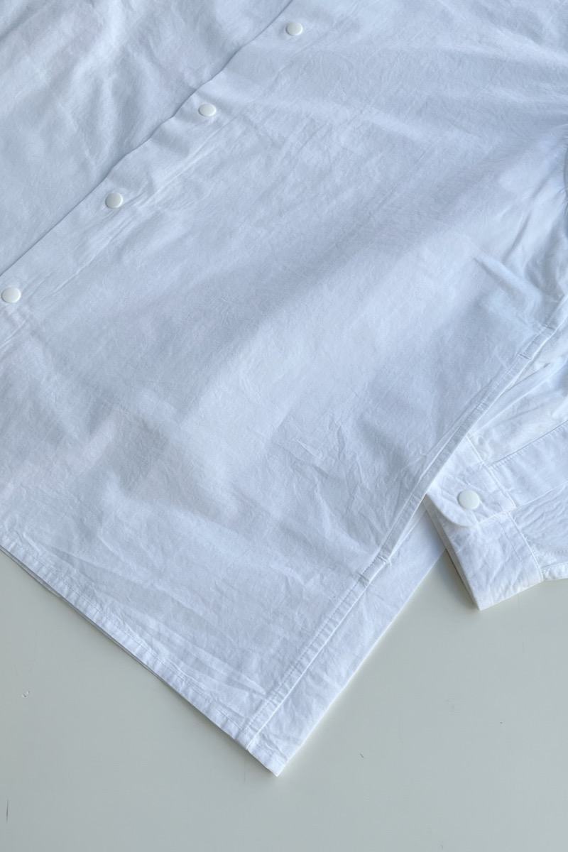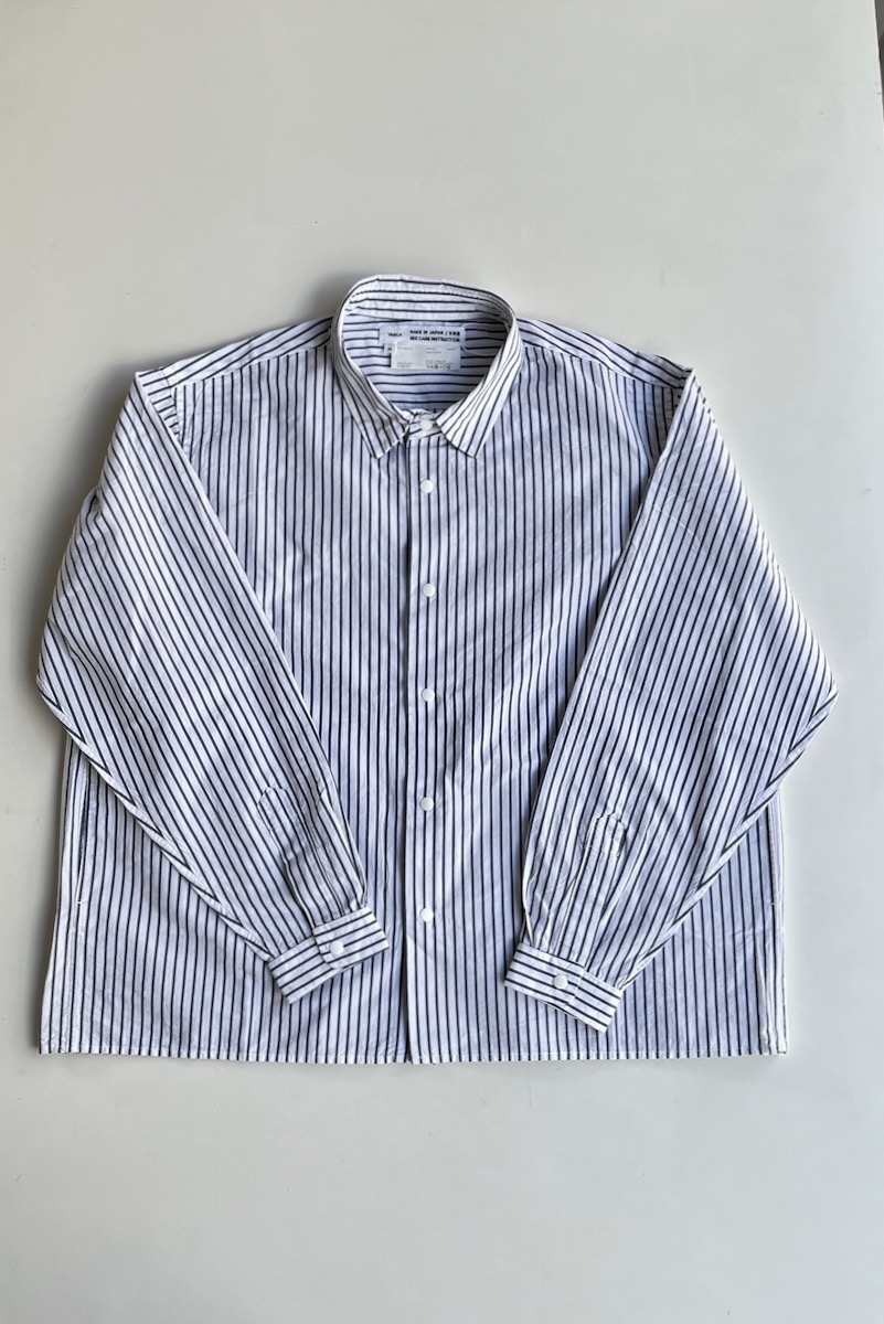 素材 綿100% カラー ホワイト ブロックストライプ(同じ幅のストライプ) ボールドストライプ(白の幅が広い) サイズ (レディス)S , M , L サイズS 肩幅 44 身幅 56.5 着丈 61 袖丈 53 (cm) サイズM 肩幅 45 身幅 58.5 着丈 62 袖丈 54 (cm) サイズL 肩幅 46 身幅 61 着丈 64 袖丈 55.5 (cm) *個体差あります。サイズの多少の誤差はご了承くださいませ。 ゆったりとした身幅で、リラックス感があります。 丈はやや短めのストンとしたスクエアカット。 両サイドにポケットが付いていますので、 ニットの下に着るというよりも、 1枚でシンプルに着たり。 ボタンを開けて軽い羽織として。 上から羽織を羽織ったりする着方をおすすめします。 洗い加工が施してありますので、洗いざらしの自然なシワ感を楽しんでいただく風合いになっています。 着脱も楽なスナップボタンがヤエカ らしい、軽い着心地のシャツです。 身長160センチ ブロックストライプ(同じ幅のストライプ)Sサイズ着用 上:ボールドストライプ(白の幅が広い)*白の分量が多いのでより爽やかな雰囲気。 下:ブロックストライプ(同じ幅のストライプ)*パキッとした雰囲気。 ボールドストライプ(白の幅が広い)Lサイズ着用 Lサイズを羽織って。 ノーアイロンの洗いざらしの風合いを楽しめますが、 お好みでアイロンをかけたい場合はお気をつけ下さい。 *品質表示タグにも記載してありますが、 ボタンにはアイロンを当てないでください。 (アイロンの熱でボタンが溶けてしまう場合があるため) ホワイトのMサイズ着用 Mサイズを羽織って。 ホワイト ブロックストライプ(同じ幅のストライプ) ボールドストライプ(白の幅が広い) ※パソコンのモニター環境により、商品の色味が実物と異なって見える場合がございます。 予めご了承ください。