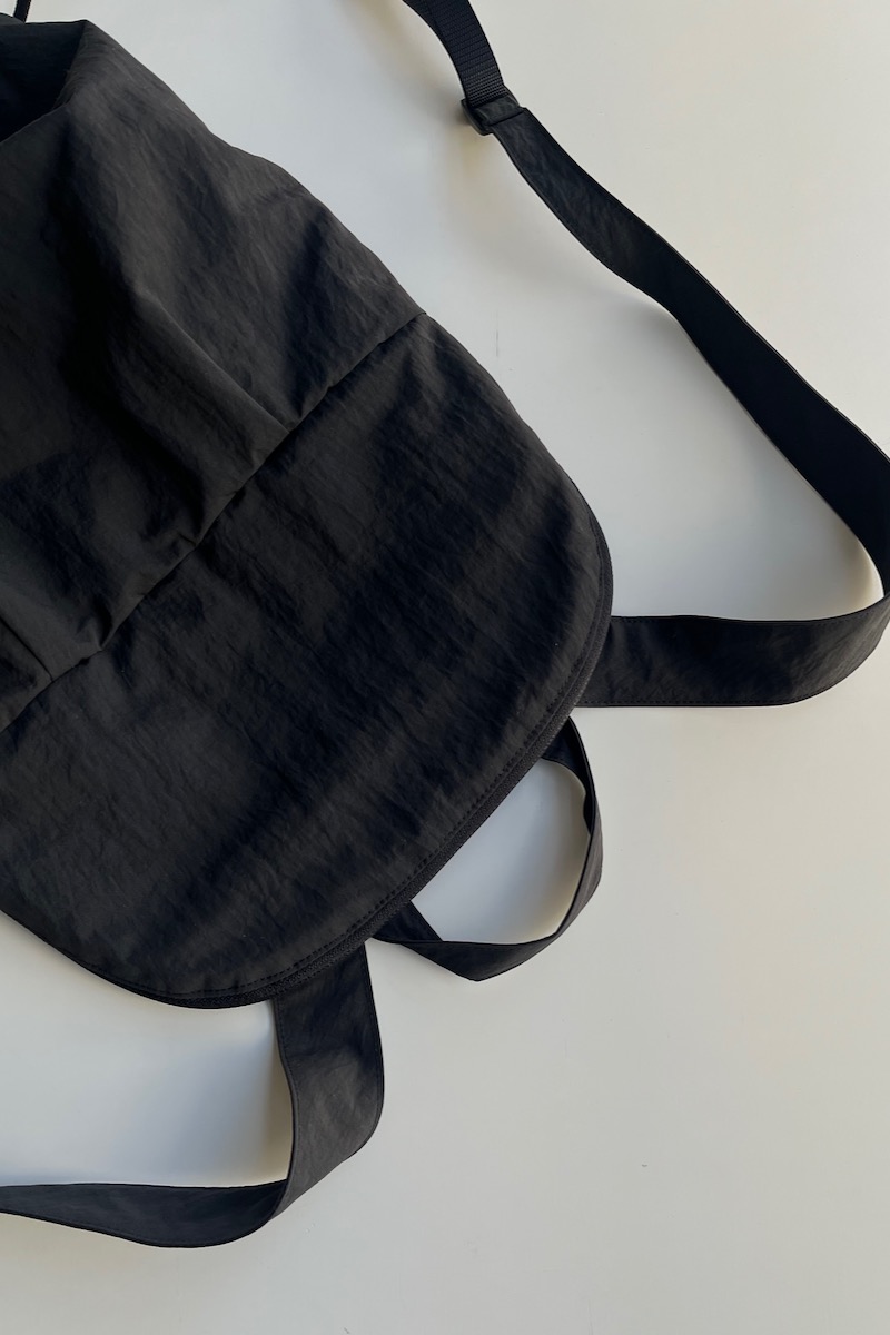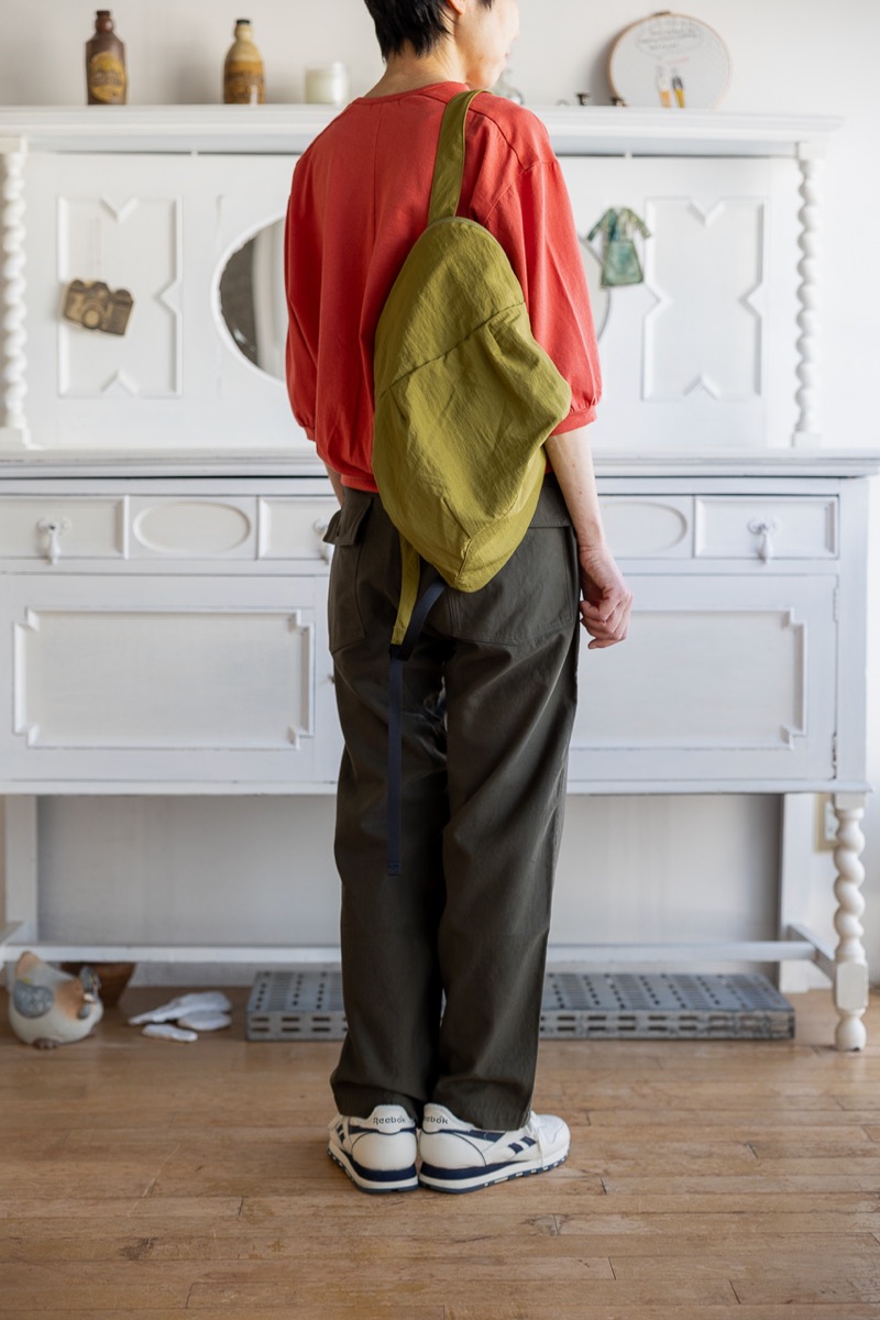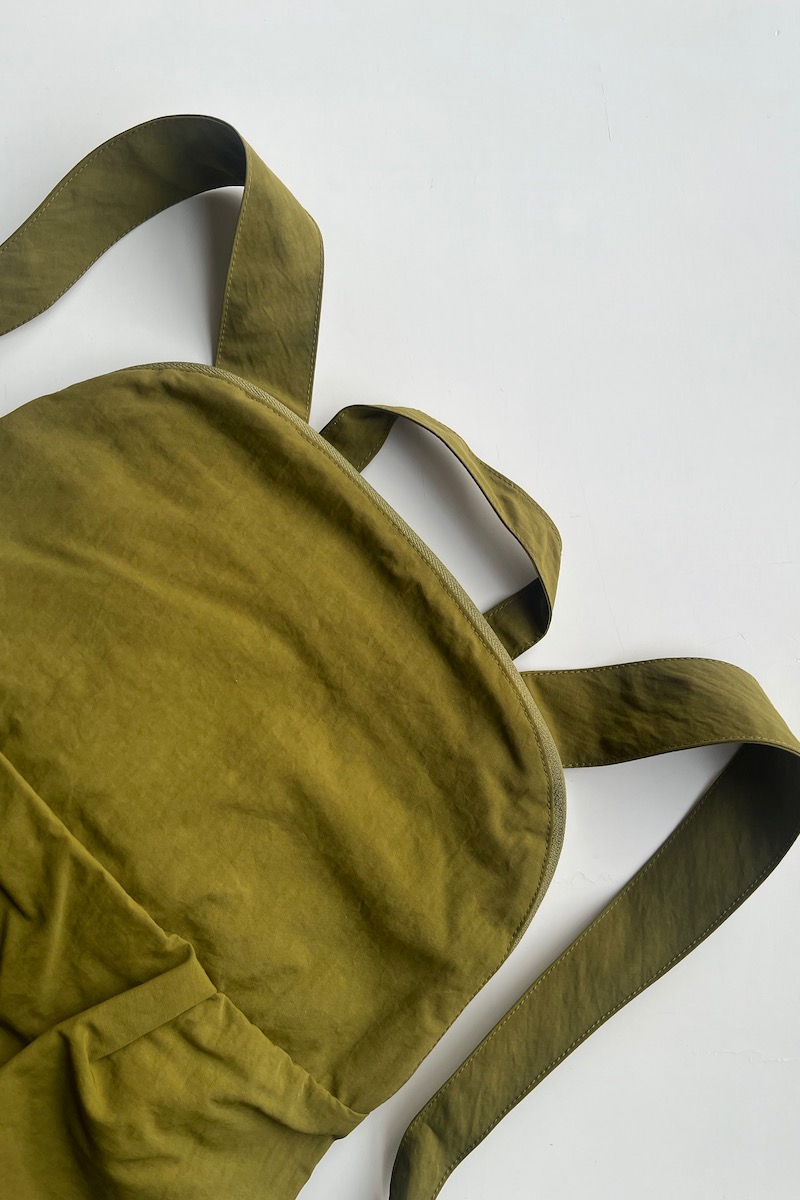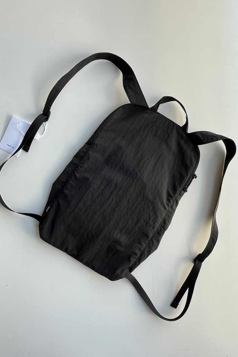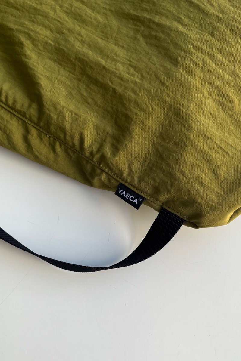 素材 ナイロン100% カラー チャコール、オリーブ サイズ ワンサイズ 横25×縦41 *個体差あります。 サイズの多少の誤差はご了承くださいませ。 2026年、今年も登場しました、ヤエカ のスカラベバッグ。 今年は軽くてややハリ感のある、ナイロン100%。 防風性能の高い生地で、自然なシワ感のある風合いです。 たくさん入れたり、重いものはオススメしませんが、 ちょっとお出かけや、サブバッグの感覚で使える小ぶりのリュックです。 背中にパッドがないので、小さく畳めます。 「スカラベ」とは、古代エジプトで崇められていたタマオシコガネという昆虫だそうです。 確かにコガネムシっぽい、コロンとしたフォルムが可愛らしいです。 向かって左より チャコール (真っ黒ではありませんが、ほぼ黒に近い、ほんの少し白っぽいチャコールになります) オリーブ オリーブ チャコール(真っ黒ではありませんが、ほぼ黒に近い、ほんの少し白っぽいチャコールになります。) 内側にファスナー付きのポケット一つありますが(上の切り替えの部分です。)、 浅いので、パスケースのような軽いものをおすすめします。 ※パソコンのモニター環境により、商品の色味が実物と異なって見える場合がございます。 予めご了承ください。