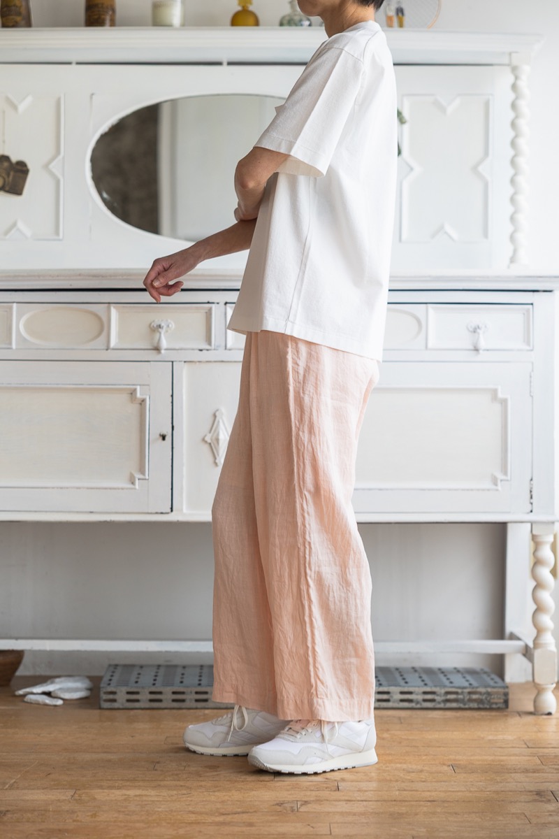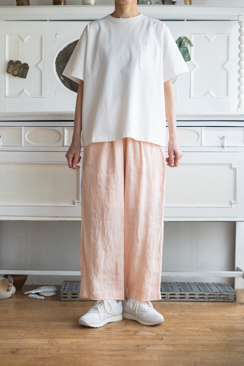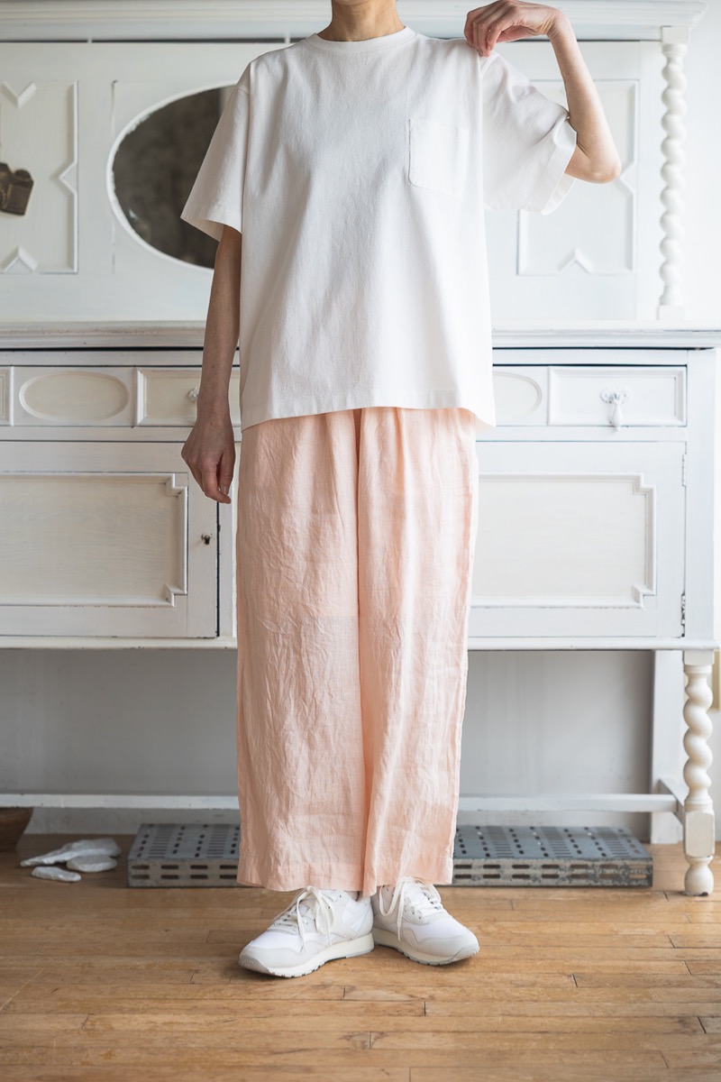 素材 綿100% カラー ホワイト、ブラック サイズ (ユニセックス) XS、S XSサイズ 肩幅 43.5 身幅 55 着丈 63 袖丈 21 袖口幅 19.5 (cm) Sサイズ 肩幅 44.5 身幅 57.5 着丈 66 袖丈 22 袖口幅 20.5 (cm) *個体差があります。サイズの多少の誤差はご了承くださいませ。 密に編み込んだ、サラッとしたドライタッチの半袖Tシャツです。 透け感の少ない、程よい厚みとハリ感があります。 肌にまとわりつくことのない気持ちの良い肌触り。 蒸し暑い季節にも気持ちよく着ていただけます。 身幅にゆとりのある、全体にゆるめのTシャツです。 左胸のポケットもアクセント。 首の詰まった、シンプルなデザインです。 身長160センチ ホワイトのXSサイズ着用 サラッとしていますので、羽織のインナーにももたつかず使いやすいです。 ホワイト ホワイトは白のステッチですので、後ろのステッチが目立ちませんが、 ブラックは後ろの白いステッチがアクセントになります。 ブラック ※パソコンのモニター環境により、商品の色味が実物と異なって見える場合がございます。 予めご了承ください。 ※パソコンのモニター環境により、商品の色味が実物と異なって見える場合がございます。 予めご了承ください。