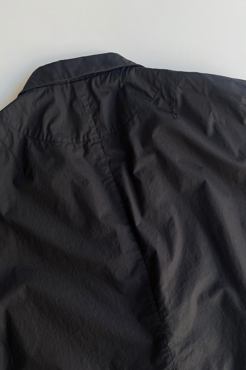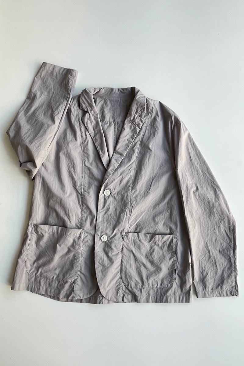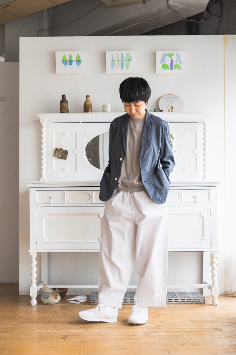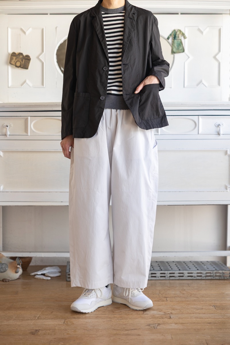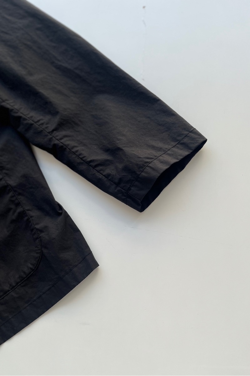 素材 綿100%(裏地なし) カラー グレイッシュグリーン(グリーンがかった濃いグレー) ブラウングレー (グレーベージュ) ブラック サイズ 2(ワンサイズ) 肩幅 43.5 身幅 52 着丈 62.5 袖丈56 袖口幅 12 (cm) *サイズの多少の誤差はご了承くださいませ。 ゴーシュのジャケットは、ジャケットだけどカジュアル。 シャツ感覚で羽織れる一枚仕立ての、とても軽いジャケット。 サイズはワンサイズ。 小さすぎず、大きすぎない、Tシャツの上にラフに気軽に羽織るのにちょうど良いくらいの、 すっきりしたサイズ感と、飽きのこないシンプルなデザインです。 昨年と生地はパッと見は似ていますが、(参考までに昨年のタイプはこちら→*) 今季はとても薄地で目の詰まったほんのりハリのあるタイプライター。 表面がつるっとしていて綺麗めな雰囲気もあります。 *洗い加工が施してありますので、全体に洗いざらしの強めのシワ感があり、ラフな雰囲気を出しています。 薄地ですが、透け感は気になりません。 向かって左がグレイッシュグリーン(グリーンがかった濃いグレー) 右がブラウングレー (グレーベージュ) 身長160センチ ブラック着用 向かって左がグレイッシュグリーン(グリーンがかった濃いグレー) 一番上のボタンを留めると、また違った雰囲気に。 キュッと詰まったスタンドカラーのようになります。 上より ブラック グレイッシュグリーン(グリーンがかった濃いグレー) ブラウングレー (グレーベージュ) ブラック グレイッシュグリーン(グリーンがかった濃いグレー) ブラウングレー (グレーベージュ) 手洗い可 向かって右がタイプライタージャケット。 左が素材違いのヘンプジャケット。カタチは同じでも素材が違うと雰囲気も変わりますね。 ※パソコンのモニター環境により、商品の色味が実物と異なって見える場合がございます。 予めご了承ください。